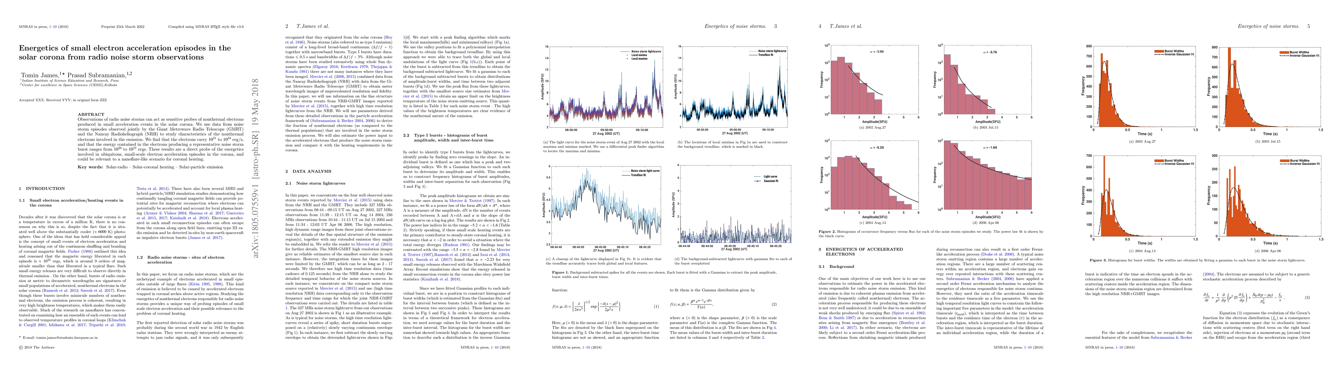 This paper investigates the energetics of small electron acceleration events in the solar corona using radio noise storm observations. Data from the GMRT and NRH reveal that these events involve electrons carrying between $10^{21}$ to $10^{24}$ erg/s, providing insights into the energy dynamics of small-scale coronal heating processes.