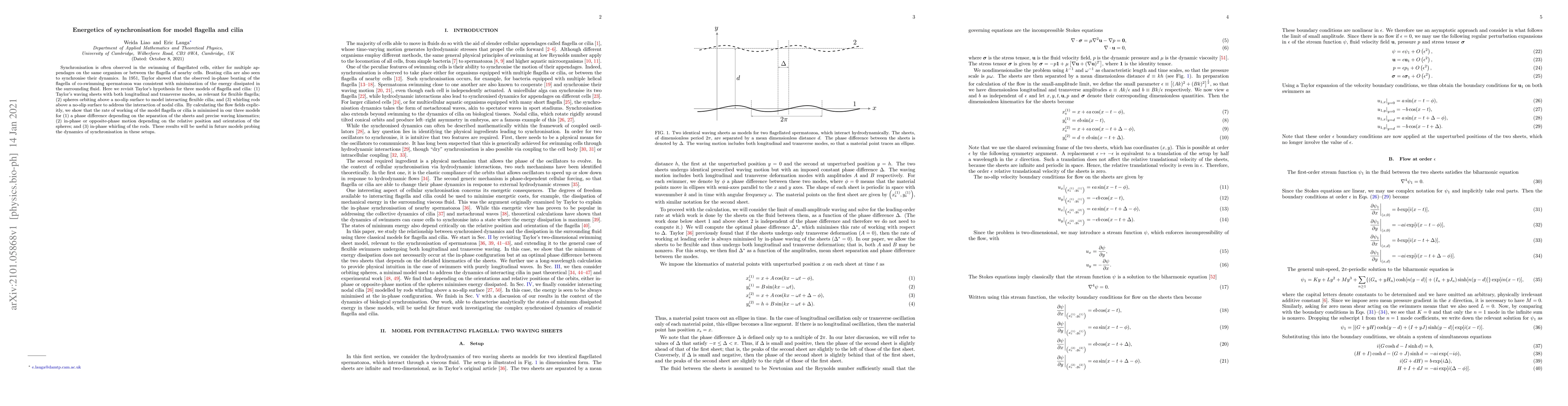 The paper presents analytical models and calculations of flow fields to demonstrate the minimization of working rate in different flagella and cilia synchronization models.