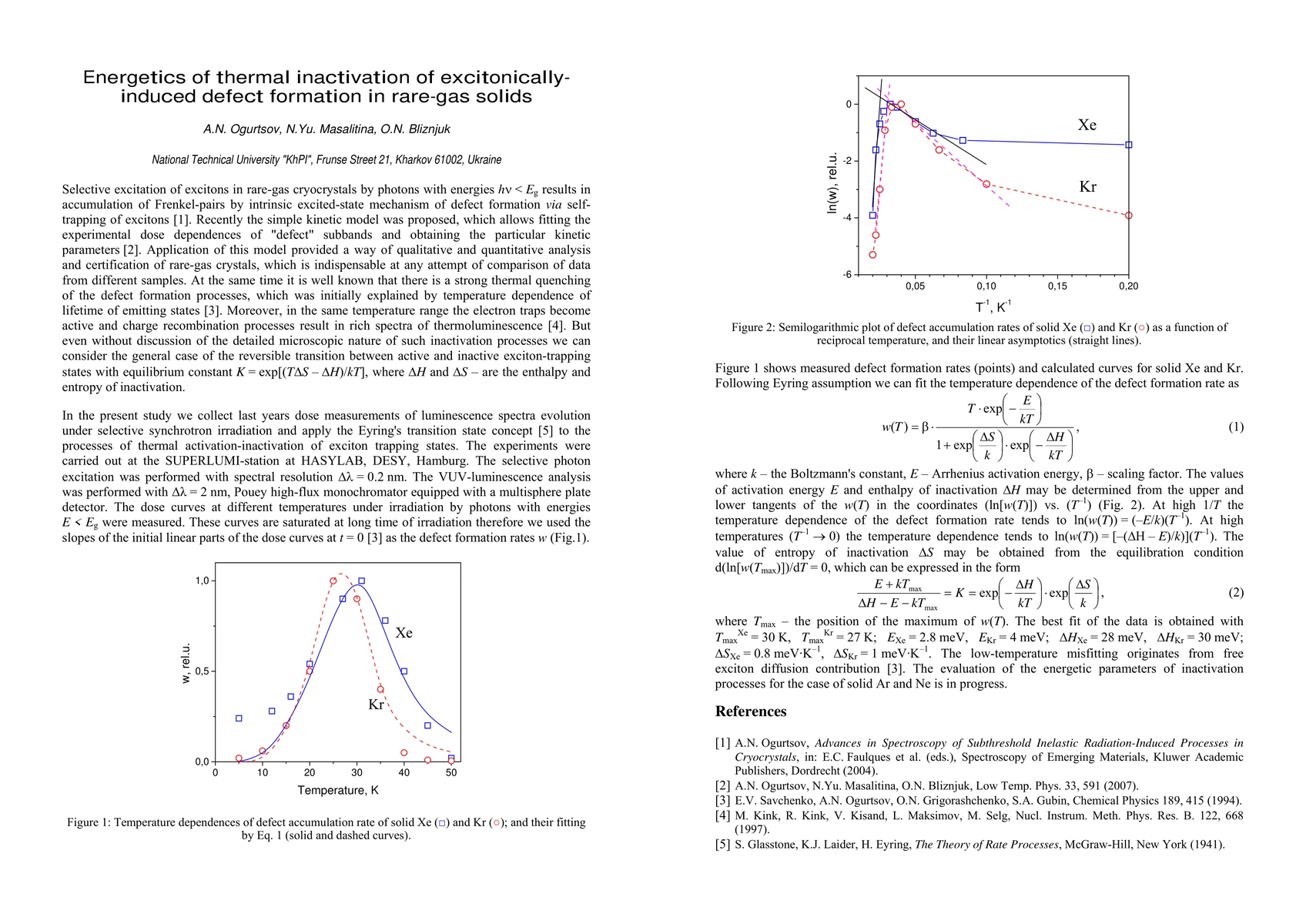 Summary: This study measures thermodynamic parameters related to the thermal inactivation of excitonically induced defects in rare-gas solids using synchrotron radiation, providing insights into defect formation rates at varying temperatures. The findings help understand the energetics of defect formation in these materials.