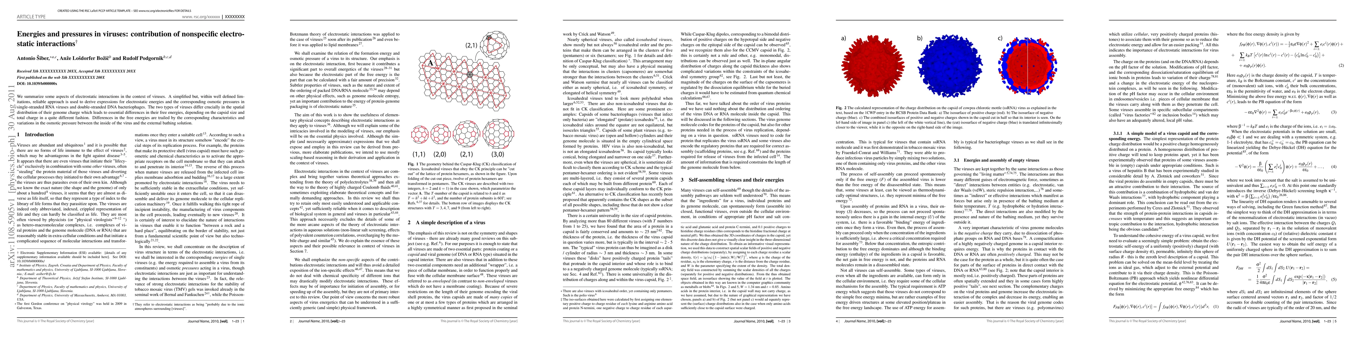 We summarize some aspects of electrostatic interactions in the context of viruses. A simplified but, within well defined limitations, reliable approach is used to derive expressions for electrostatic energies and the corresponding osmotic pressures in single-stranded RNA viruses and double-stranded DNA bacteriophages. The two types of viruses differ crucially in the spatial distribution of their genome charge which leads to essential differences in their free energies, depending on the capsid size and total charge in a quite different fashion. Differences in the free energies are trailed by the corresponding characteristics and variations in the osmotic pressure between the inside of the virus and the external bathing solution.