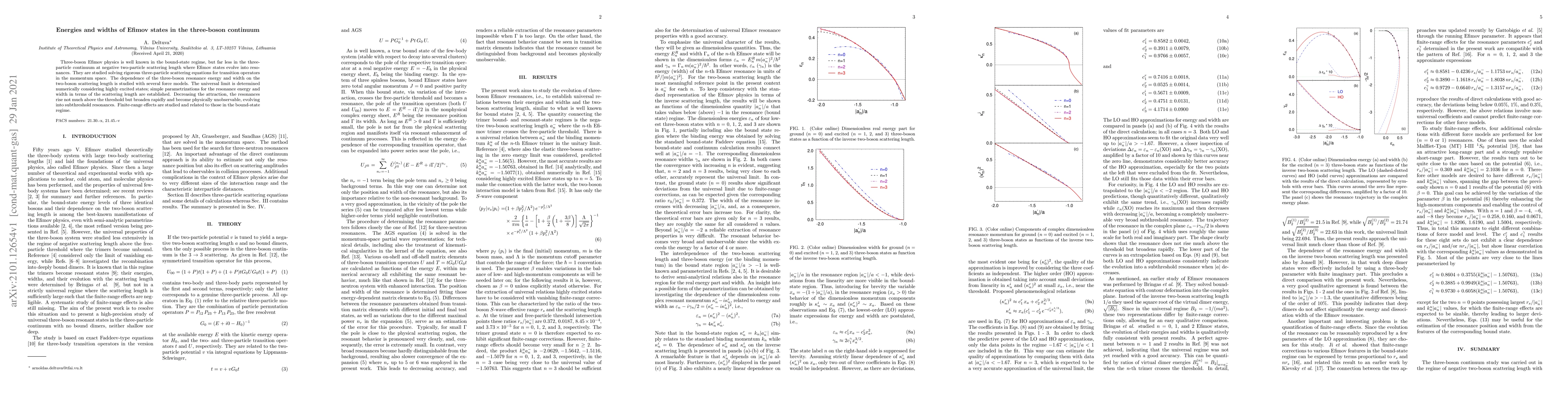 The paper presents a detailed analysis of three-boson Efimov resonances using scattering equations in momentum space, providing numerical universal limits and parametrizations for resonance properties.