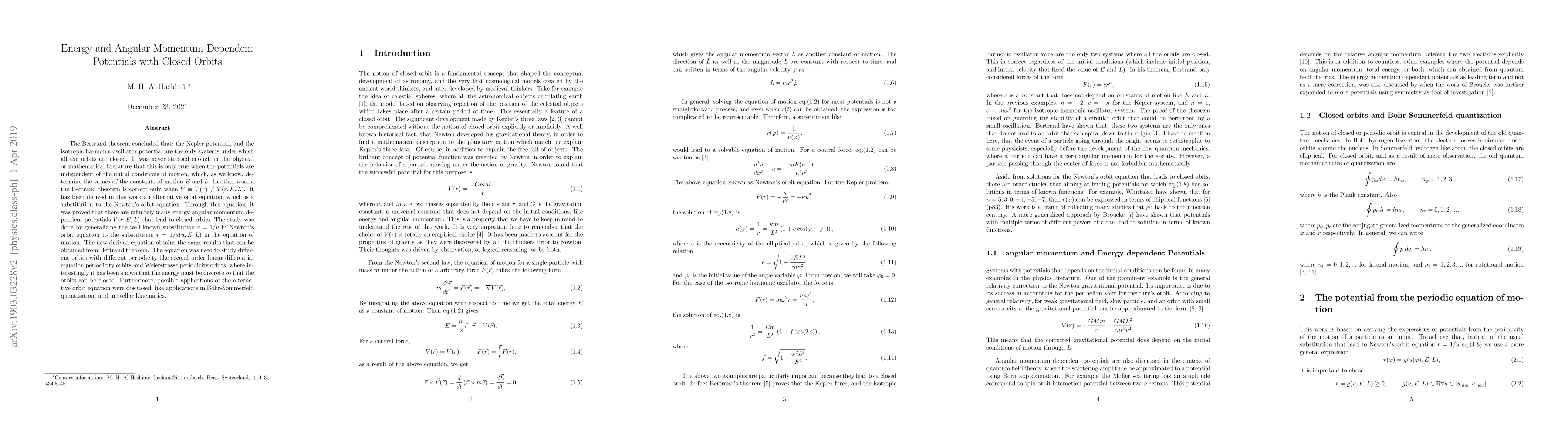 Researchers developed an alternative orbit equation to prove that energy and angular momentum dependent potentials can lead to closed orbits, contradicting the Bertrand theorem.