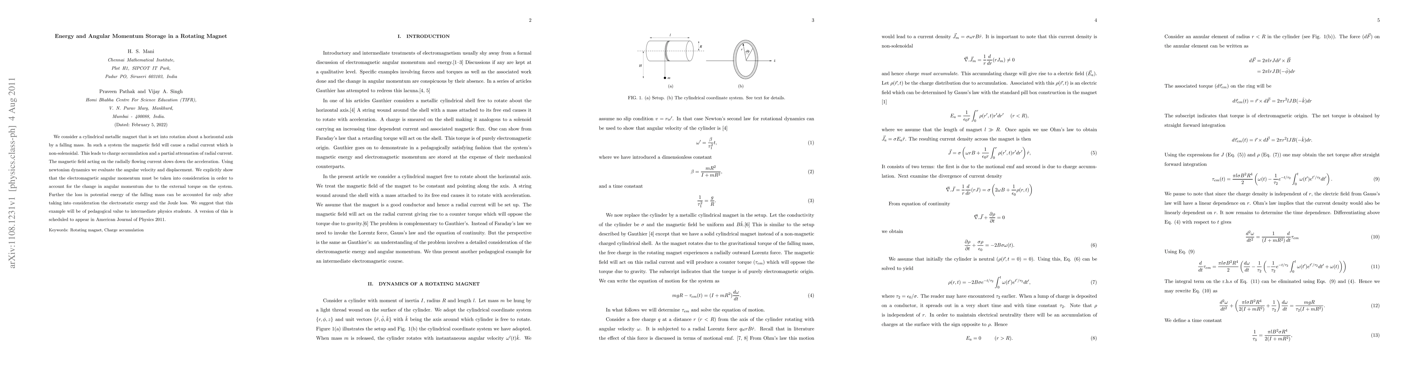 Researchers studied a rotating magnet to understand how it stores energy and angular momentum, finding that electromagnetic forces slow down the rotation and affect its total energy.