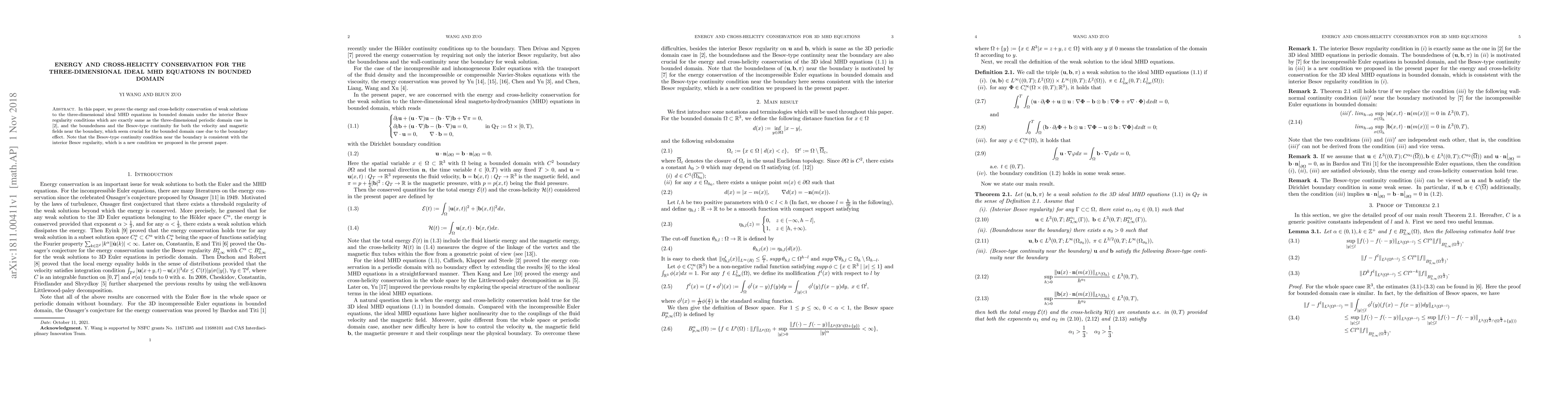 In this paper, we prove the energy and cross-helicity conservation of weak solutions to the three-dimensional ideal MHD equations in bounded domain under the interior Besov regularity conditions which are exactly same as the three-dimensional periodic domain case in \cite{Caflisch 97}, and the boundedness and the Besov-type continuity for both the velocity and magnetic fields near the boundary, which seem crucial for the bounded domain case due to the boundary effect. Note that the Besov-type continuity condition near the boundary is consistent with the interior Besov regularity, which is a new condition we proposed in the present paper.