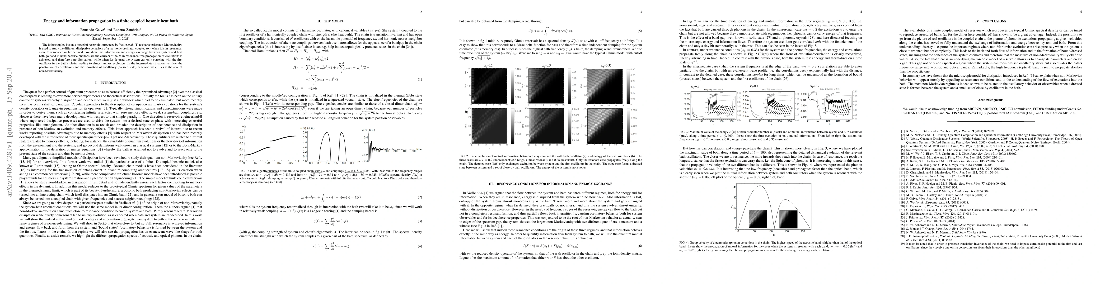 The finite coupled bosonic model of reservoir introduced by Vasile et al. [1] to characterize non-Markovianity, is used to study the different dissipative behaviors of a harmonic oscillator coupled to it when it is in resonance, close to resonance or far detuned. We show that information and energy exchange between system and heat bath go hand in hand because phonons are the carriers of both: in resonance free propagation of excitations is achieved, and therefore pure dissipation, while when far detuned the system can only correlate with the first oscillator in the bath's chain, leading to almost unitary evolution. In the intermediate situation we show the penetration of correlations and the formation of oscillatory (dressed state) behavior, which lies at the root of non-Markovianity.