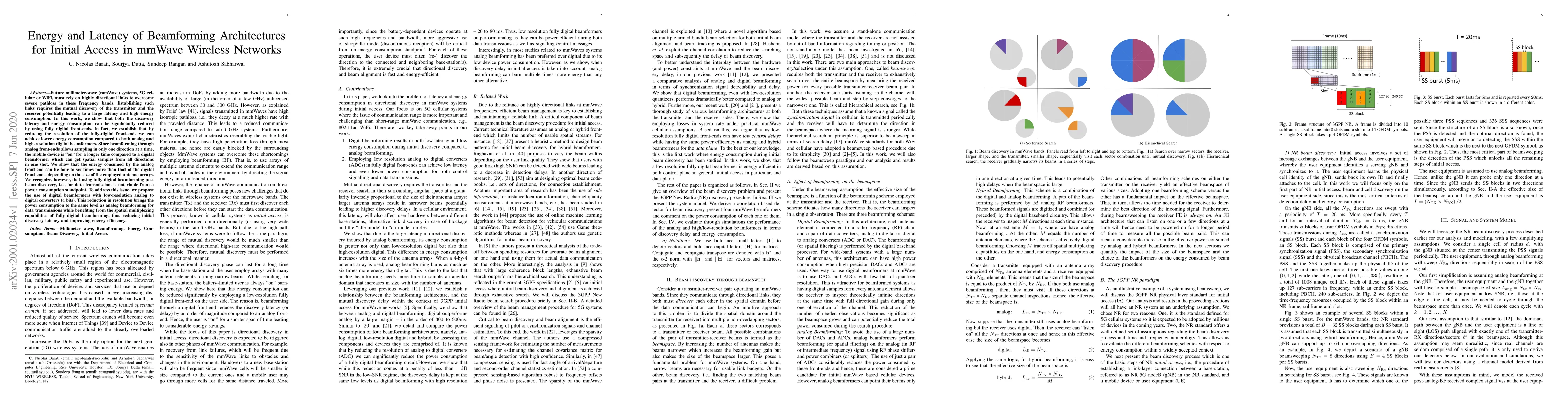 This paper investigates the energy and latency trade-offs in beamforming architectures for initial access in mmWave networks. It demonstrates that fully digital front-ends can significantly reduce both discovery latency and energy consumption compared to analog solutions, with lower resolution digital beamformers offering the best energy efficiency.