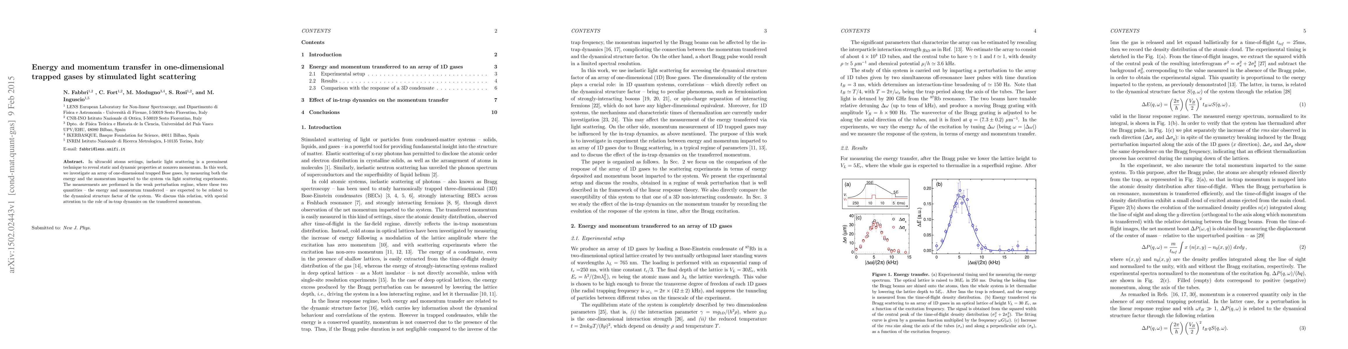 In ultracold atoms settings, inelastic light scattering is a preeminent technique to reveal static and dynamic properties at nonzero momentum. In this work, we investigate an array of one-dimensional trapped Bose gases, by measuring both the energy and the momentum imparted to the system via light scattering experiments. The measurements are performed in the weak perturbation regime, where these two quantities - the energy and momentum transferred - are expected to be related to the dynamical structure factor of the system. We discuss this relation, with special attention to the role of in-trap dynamics on the transferred momentum.