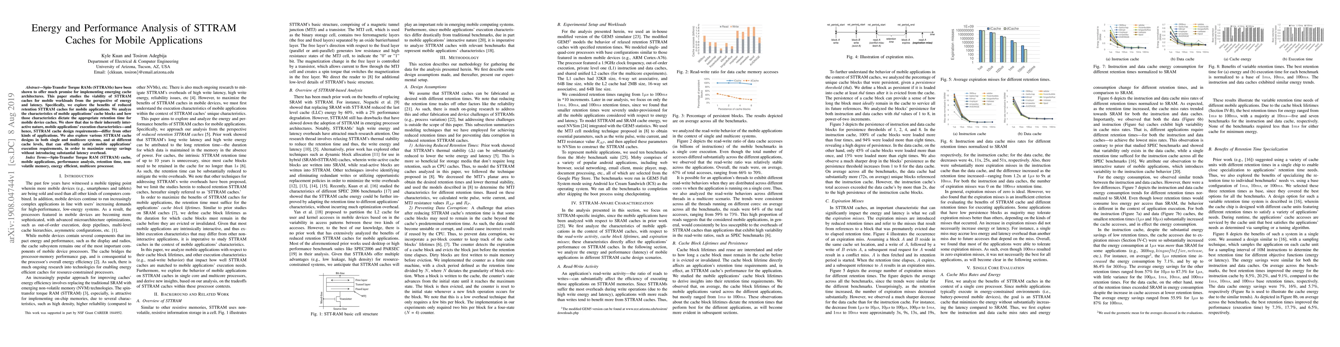 This paper analyzes the viability of STTRAM caches for mobile applications, exploring their energy and latency benefits and optimal retention times. It identifies various cache designs that can efficiently satisfy mobile application execution requirements while maximizing energy savings and minimizing latency.
