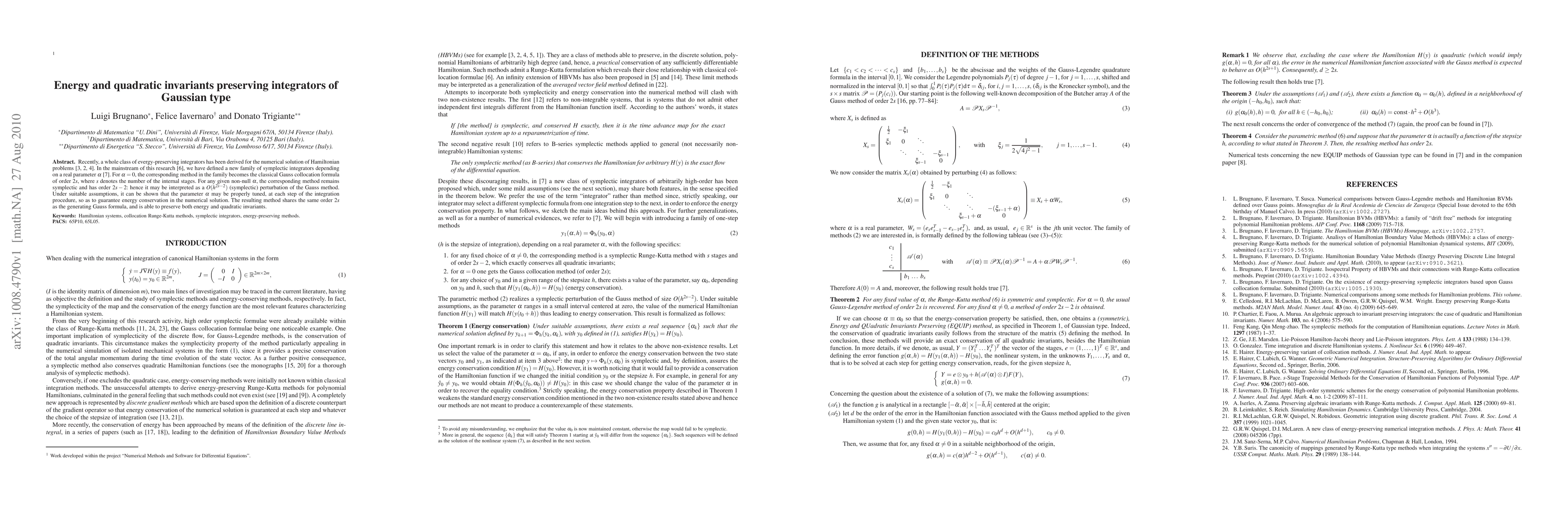 A new family of energy-preserving integrators has been developed, combining symplectic methods with perturbations of the Gauss collocation formula to preserve both energy and quadratic invariants.