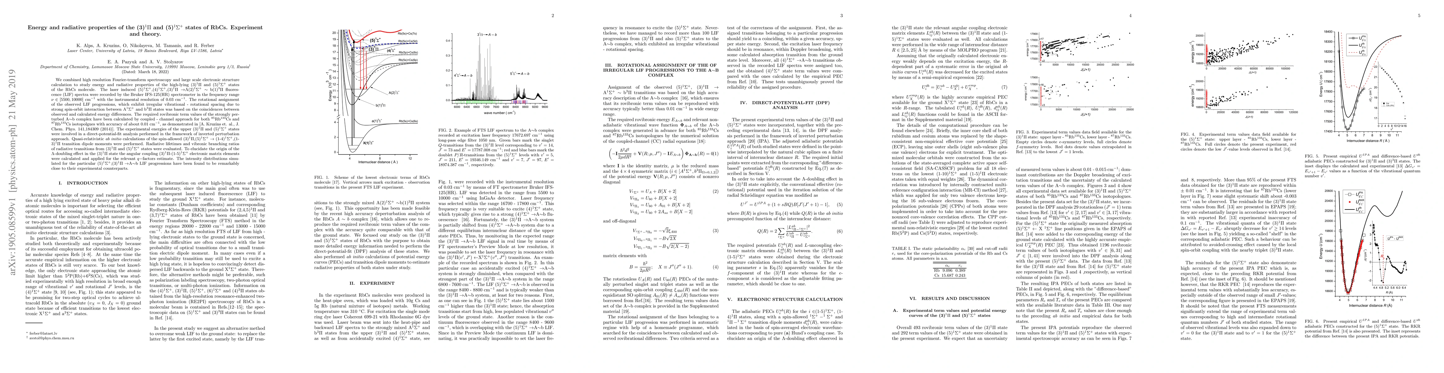 This study combines high-resolution spectroscopy and electronic structure calculations to investigate the energy and radiative properties of the (3)1Π and (5)1Σ+ states in RbCs. Experimental LIF spectra reveal irregular vibrational-rotational spacing due to spin-orbit interactions, while theoretical calculations provide accurate rovibronic term values and radiative lifetimes, closely matching experimental results.