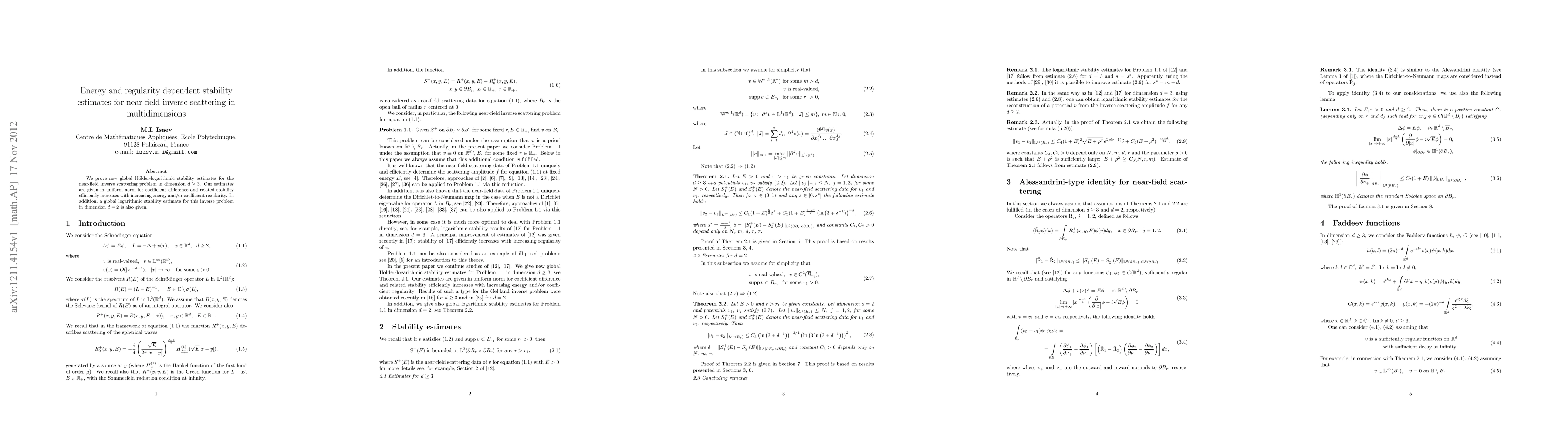 This paper establishes new global H\"older-logarithmic stability estimates for the near-field inverse scattering problem in dimensions $d \geq 3$, showing that stability improves with higher energy and coefficient regularity. A global logarithmic stability estimate is also provided for dimension $d=2$.