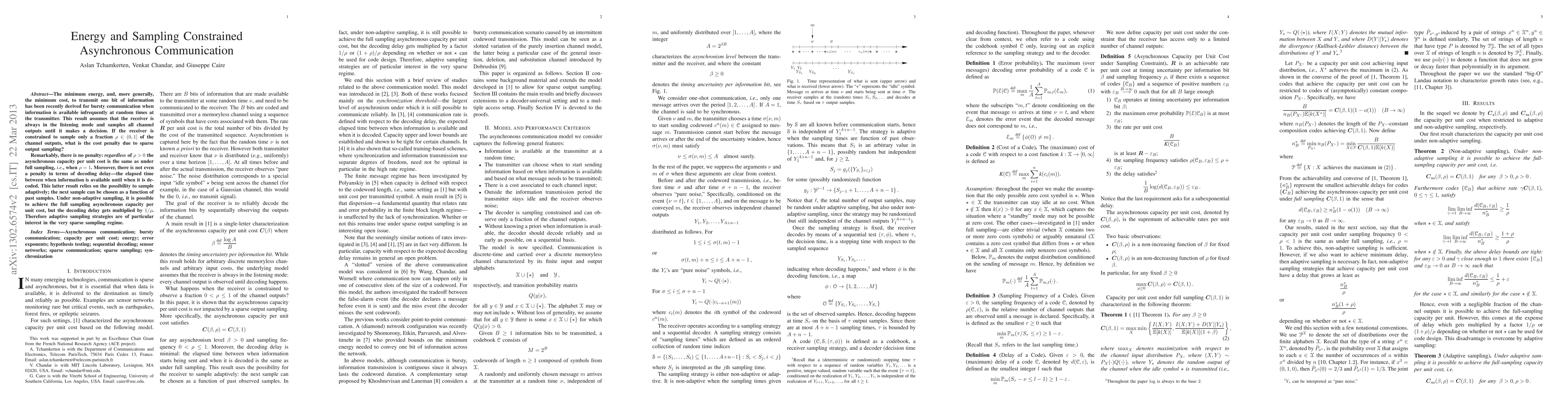 Asynchronous communication can still achieve full capacity per unit cost even with sparse output sampling, but adaptive strategies are crucial for optimal performance. Sampling rates as low as 0% do not incur a penalty in terms of decoding delay.