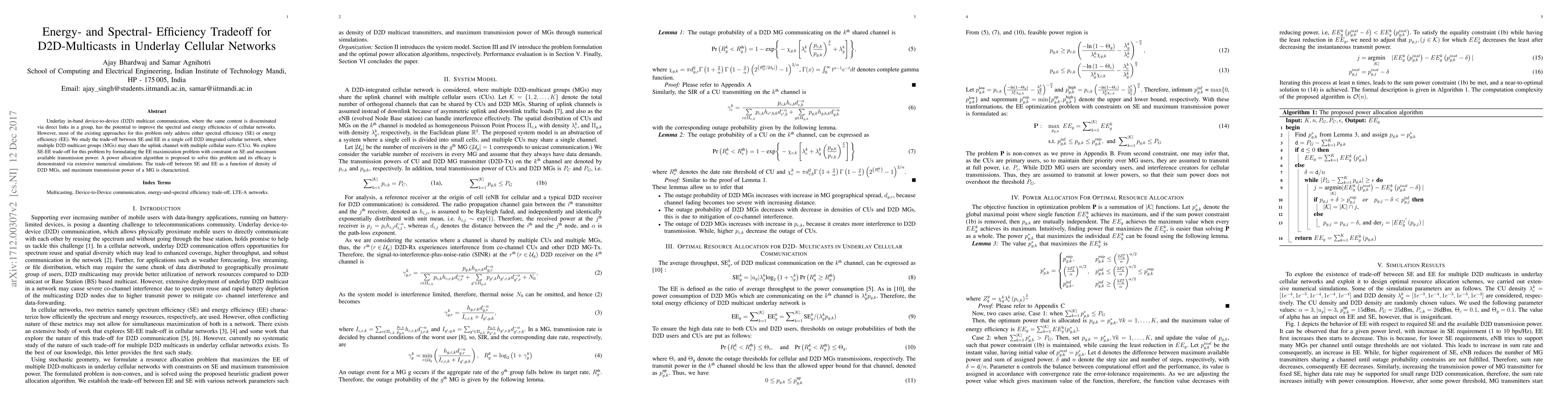 This paper investigates the energy- and spectral-efficiency tradeoff in underlay D2D multicast communications within cellular networks. It proposes a power allocation algorithm to maximize energy efficiency while considering spectral efficiency constraints and demonstrates its effectiveness through numerical simulations.
