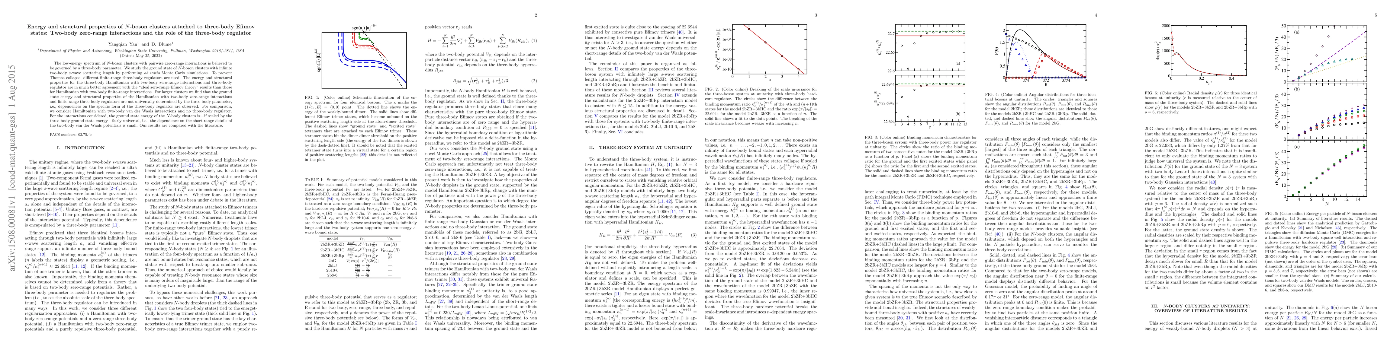 This paper investigates the energy and structural properties of $N$-boson clusters using {\em{ab initio}} Monte Carlo simulations, focusing on the role of two-body zero-range interactions and finite-range three-body regulators to prevent collapse. The study finds better agreement with Efimov theory for zero-range interactions compared to finite-range interactions, and highlights non-universality in larger clusters dependent on the specific regulator used.