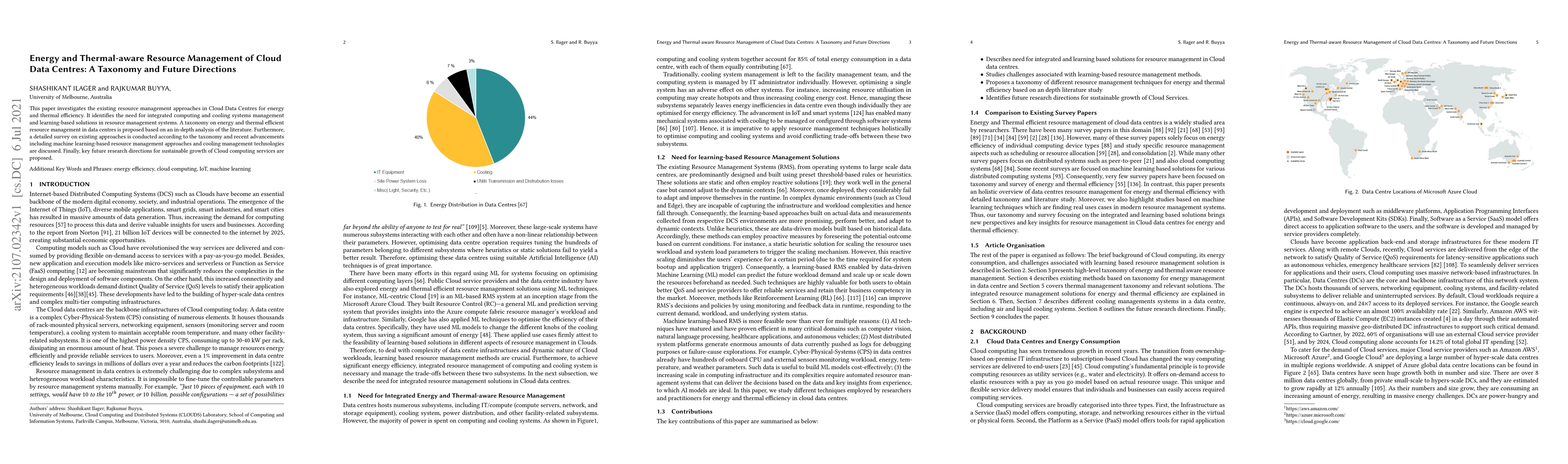 This paper provides a taxonomy for energy and thermal efficient resource management in cloud data centres, highlighting integrated computing and cooling systems. It reviews existing methods and discusses recent advancements in machine learning and cooling technologies for improved efficiency.