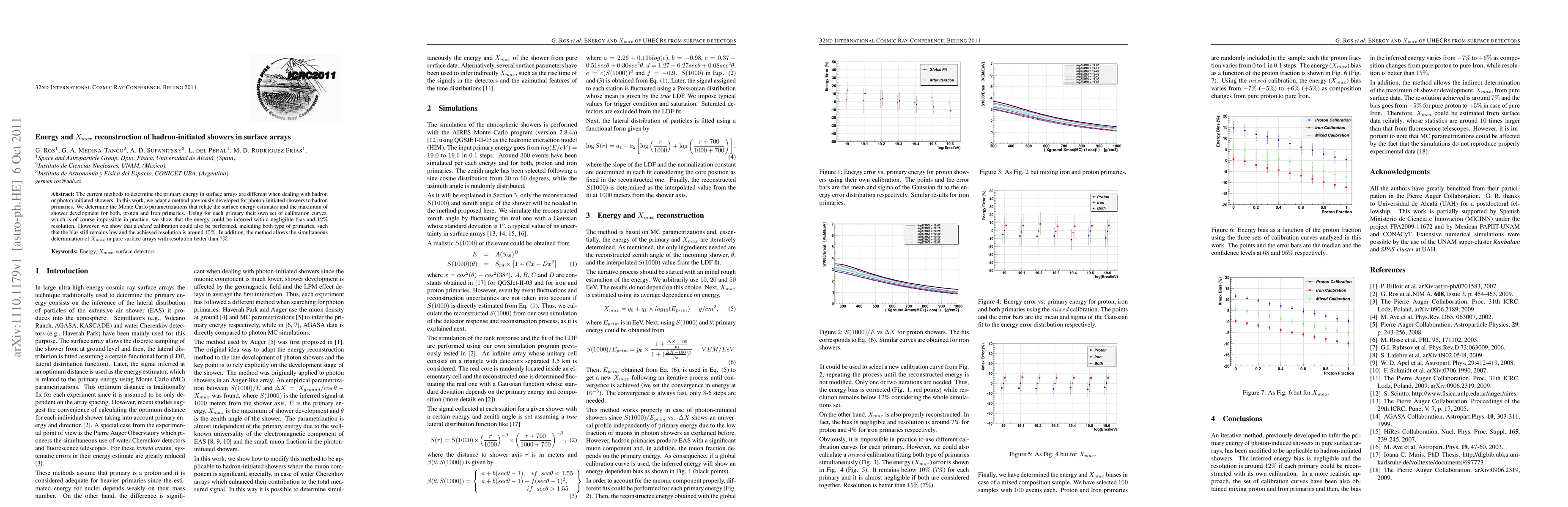 Researchers developed a method to accurately measure primary energy in surface arrays for both hadron and photon-initiated showers, achieving 12% resolution and 7% Xmax determination.