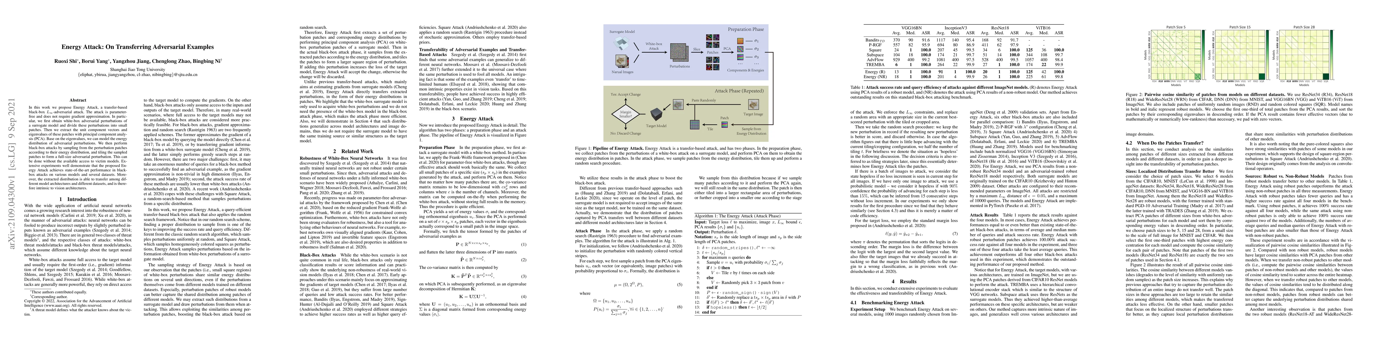 Researchers propose Energy Attack, a new method to create black-box adversarial examples that can transfer among different models and datasets without access to the victim model. The attack achieves state-of-the-art performance in various models and datasets.