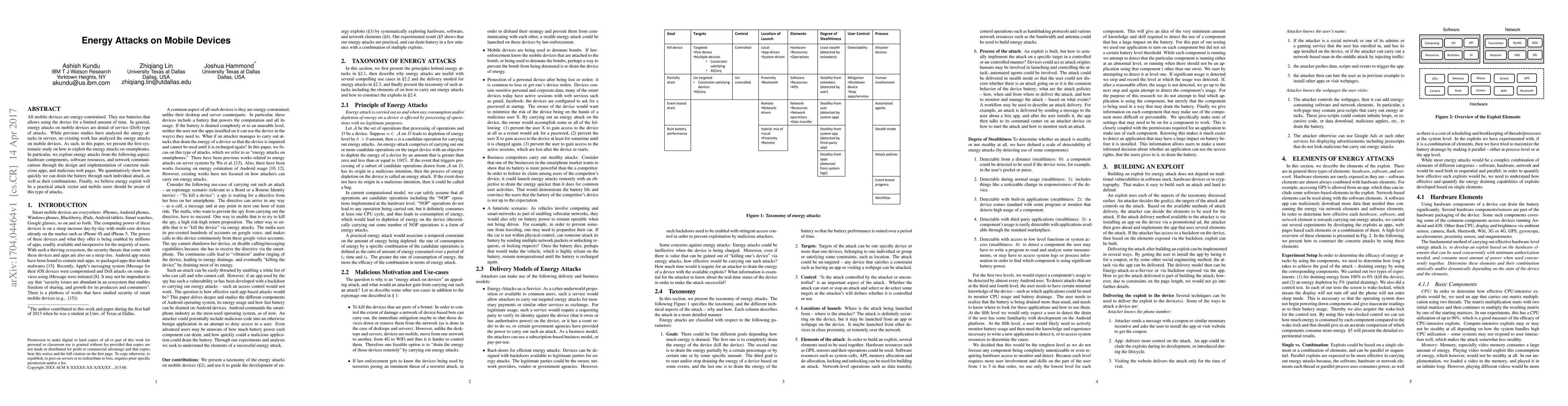 This paper presents the first systematic study on energy attacks targeting mobile devices, focusing on hardware, software, and network components. It demonstrates how malicious apps and web pages can rapidly drain smartphone batteries, highlighting the practical threat of energy exploits to mobile users.