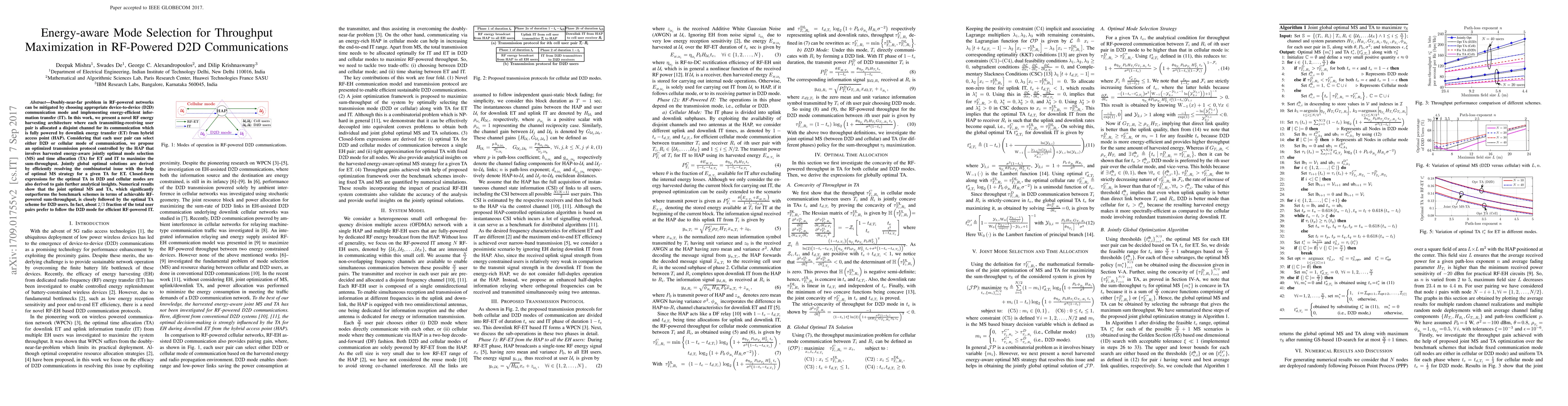 Doubly-near-far problem in RF-powered networks can be mitigated by choosing appropriate device-to-device (D2D) communication mode and implementing energy-efficient information transfer (IT). In this work, we present a novel RF energy harvesting architecture where each transmitting-receiving user pair is allocated a disjoint channel for its communication which is fully powered by downlink energy transfer (ET) from hybrid access point (HAP). Considering that each user pair can select either D2D or cellular mode of communication, we propose an optimized transmission protocol controlled by the HAP that involves harvested energy-aware jointly optimal mode selection (MS) and time allocation (TA) for ET and IT to maximize the sum-throughput. Jointly global optimal solutions are derived by efficiently resolving the combinatorial issue with the help of optimal MS strategy for a given TA for ET. Closed-form expressions for the optimal TA in D2D and cellular modes are also derived to gain further analytical insights. Numerical results show that the joint optimal MS and TA, which significantly outperforms the benchmark schemes in terms of achievable RF-powered sum-throughput, is closely followed by the optimal TA scheme for D2D users. In fact, about $2/3$ fraction of the total user pairs prefer to follow the D2D mode for efficient RF-powered IT.