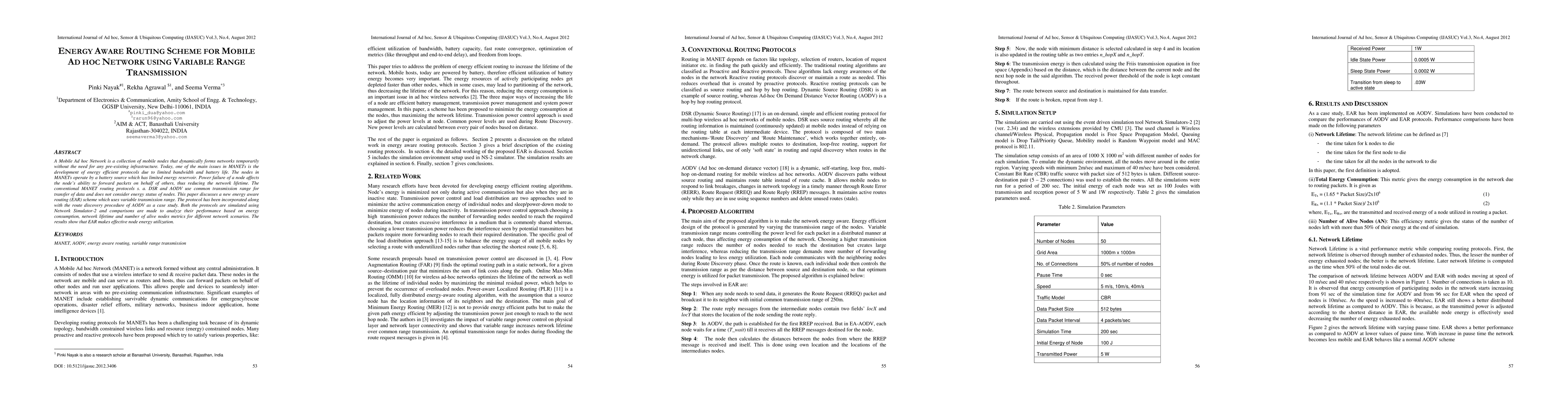 A new energy-aware routing scheme for mobile ad hoc networks was developed, demonstrating effective node energy utilization in various network scenarios.