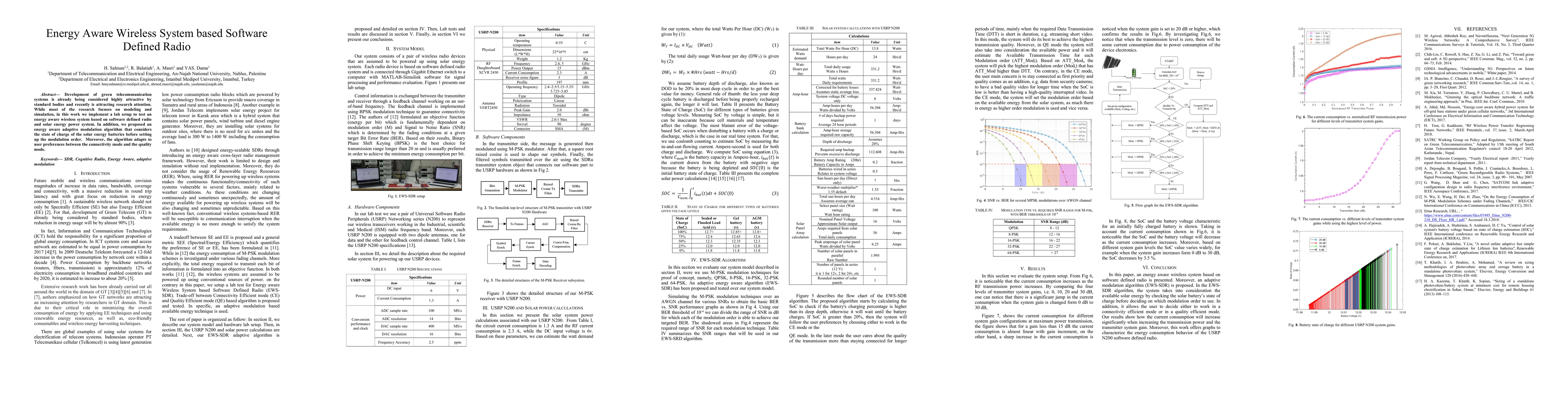 This paper presents an energy-aware wireless system using software-defined radio powered by a solar energy system, along with an adaptive modulation algorithm that optimizes energy use based on battery charge and user connectivity preferences. The effectiveness of the proposed system is demonstrated through a lab setup.