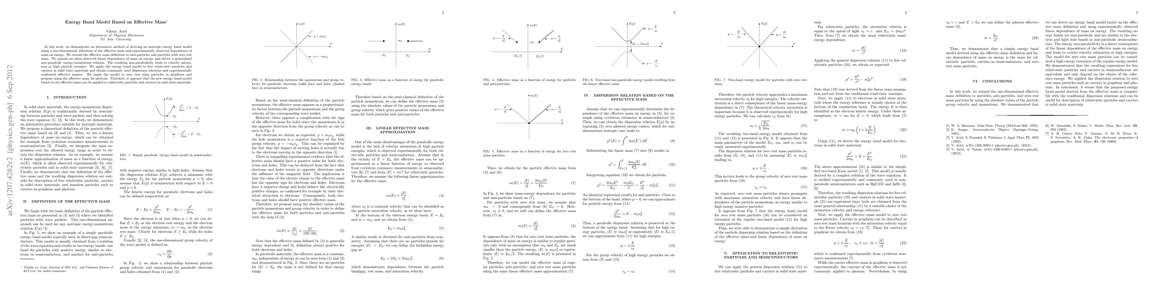 This paper proposes an alternative energy band model based on the effective mass, extending its definition to anti-particles and zero rest mass particles. It derives a generalized non-parabolic energy-momentum relation, applicable to relativistic particles and solid-state materials, and suggests using effective mass for photons in graphene.
