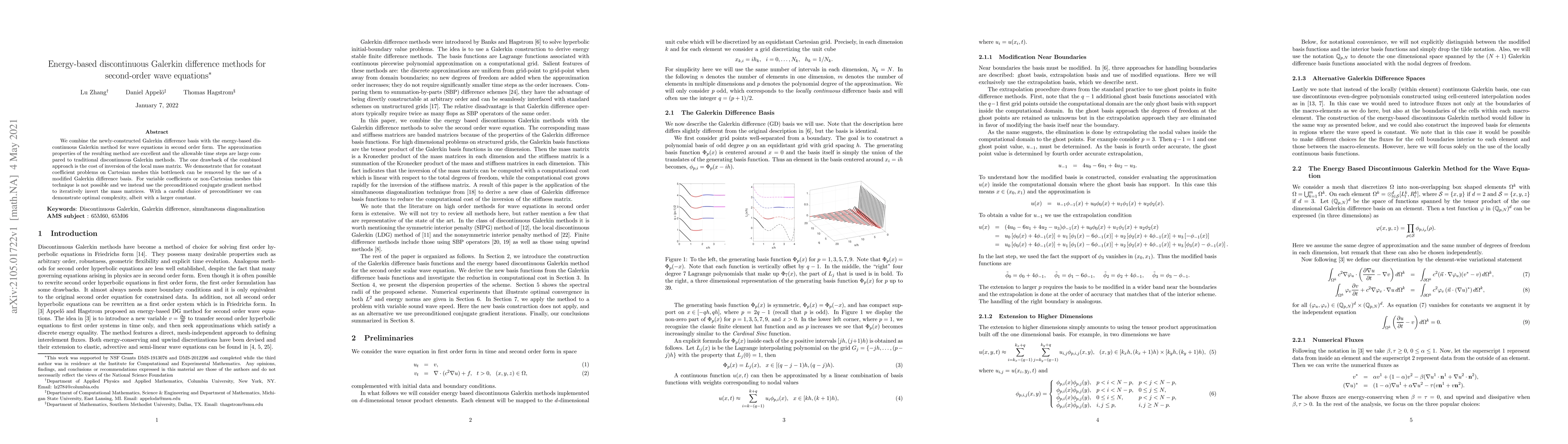 We combine the newly-constructed Galerkin difference basis with the energy-based discontinuous Galerkin method for wave equations in second order form. The approximation properties of the resulting method are excellent and the allowable time steps are large compared to traditional discontinuous Galerkin methods. The one drawback of the combined approach is the cost of inversion of the local mass matrix. We demonstrate that for constant coefficient problems on Cartesian meshes this bottleneck can be removed by the use of a modified Galerkin difference basis. For variable coefficients or non-Cartesian meshes this technique is not possible and we instead use the preconditioned conjugate gradient method to iteratively invert the mass matrices. With a careful choice of preconditioner we can demonstrate optimal complexity, albeit with a larger constant.