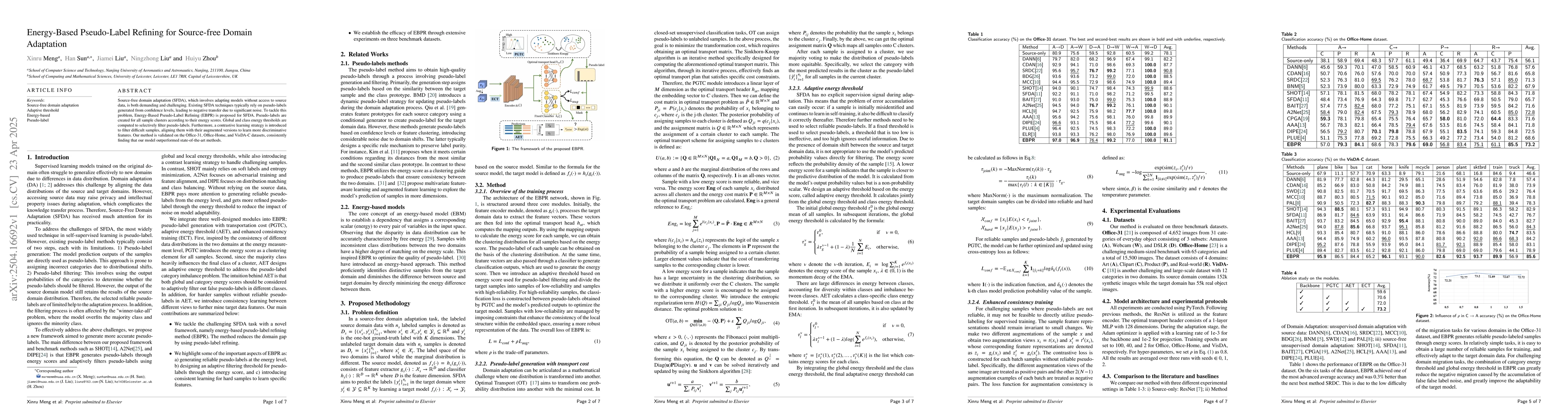 A new method called Energy-Based Pseudo-Label Refining is proposed to improve source-free domain adaptation, outperforming state-of-the-art methods on several datasets.
