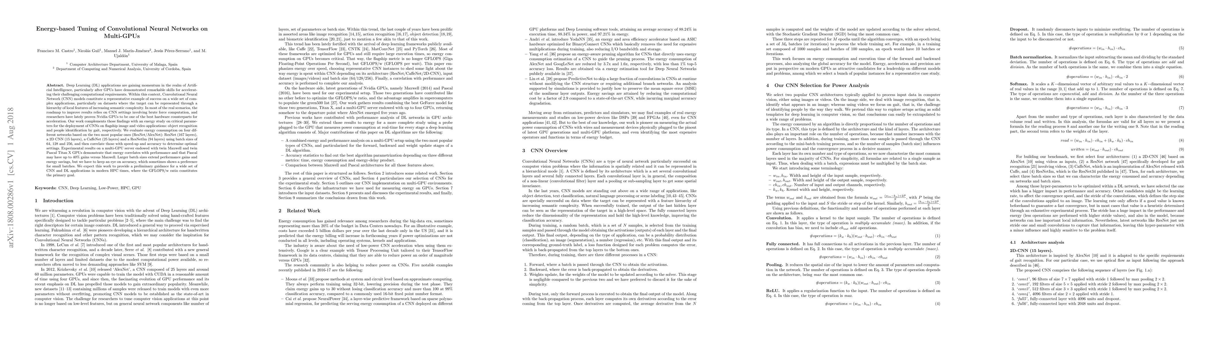 Researchers study energy consumption of Convolutional Neural Networks on multi-GPUs and find that larger batch sizes and Pascal GPUs can lead to up to 40% performance gains while reducing energy usage.