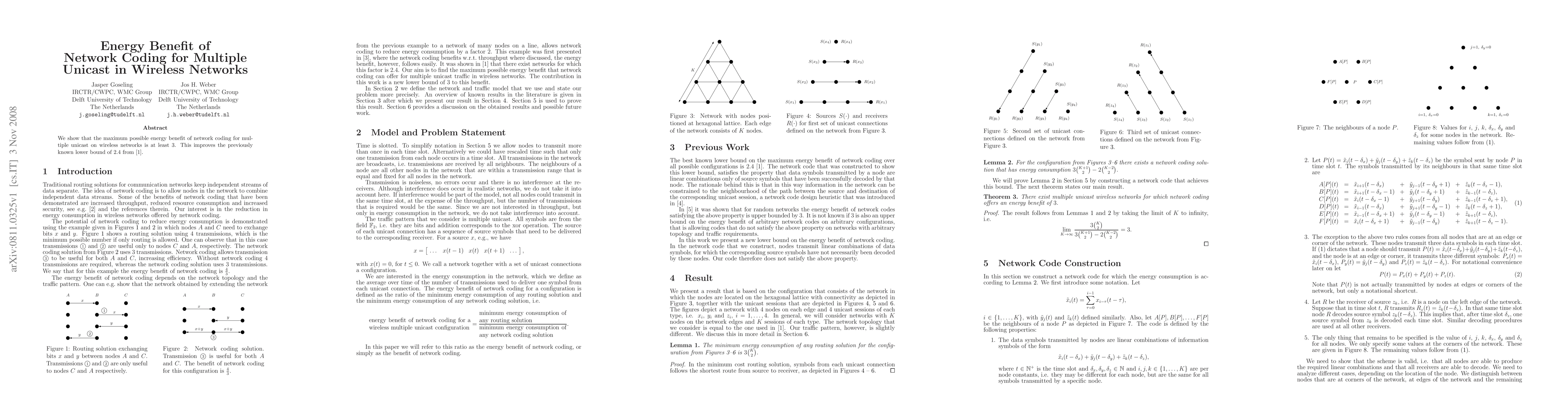 Summary: This paper demonstrates that network coding for multiple unicast in wireless networks can achieve a maximum energy benefit of at least 3, surpassing the previously known lower bound of 2.4.