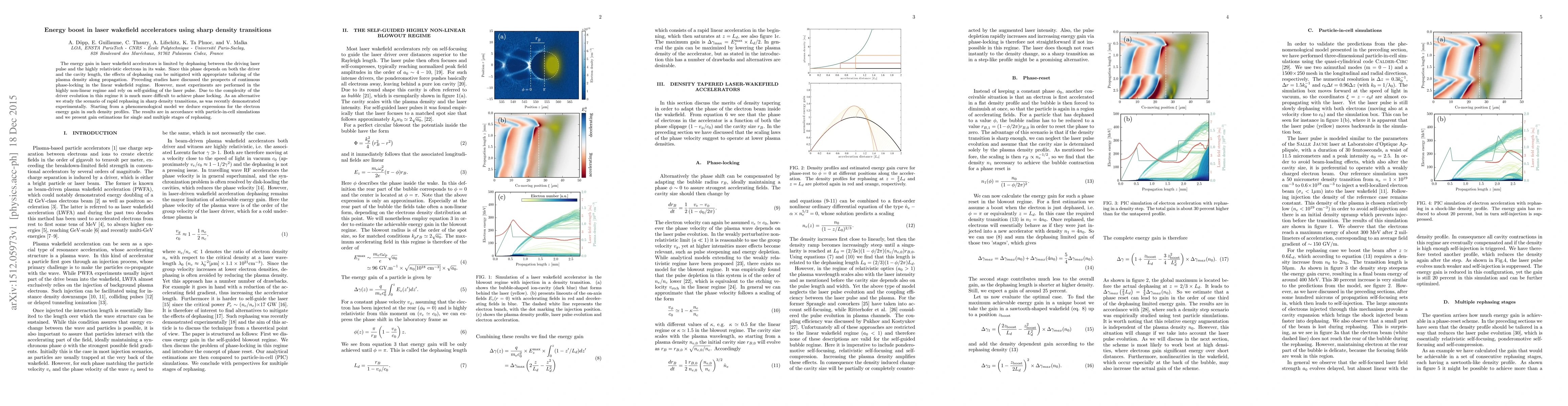 This paper explores enhancing energy gain in laser wakefield accelerators by utilizing sharp density transitions to rephase the driving laser pulse, thereby mitigating dephasing effects. The study provides theoretical and simulation-based models for electron energy gain in such density profiles, demonstrating potential improvements over current non-linear regime methods.