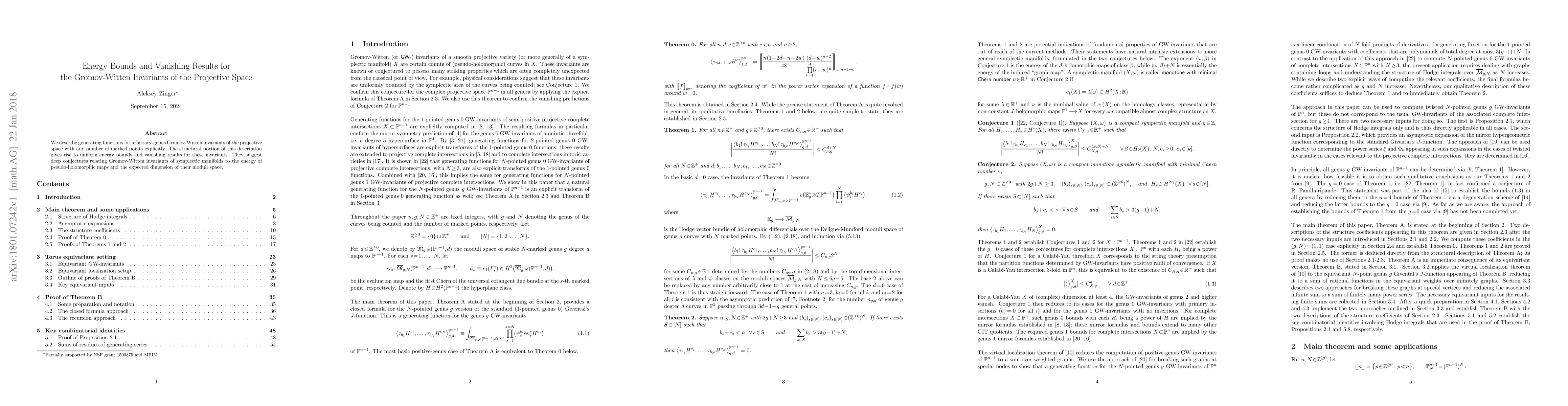 This paper presents generating functions for Gromov-Witten invariants of projective space, deriving uniform energy bounds and vanishing results, and posits conjectures linking these invariants to pseudo-holomorphic maps and moduli space dimensions.