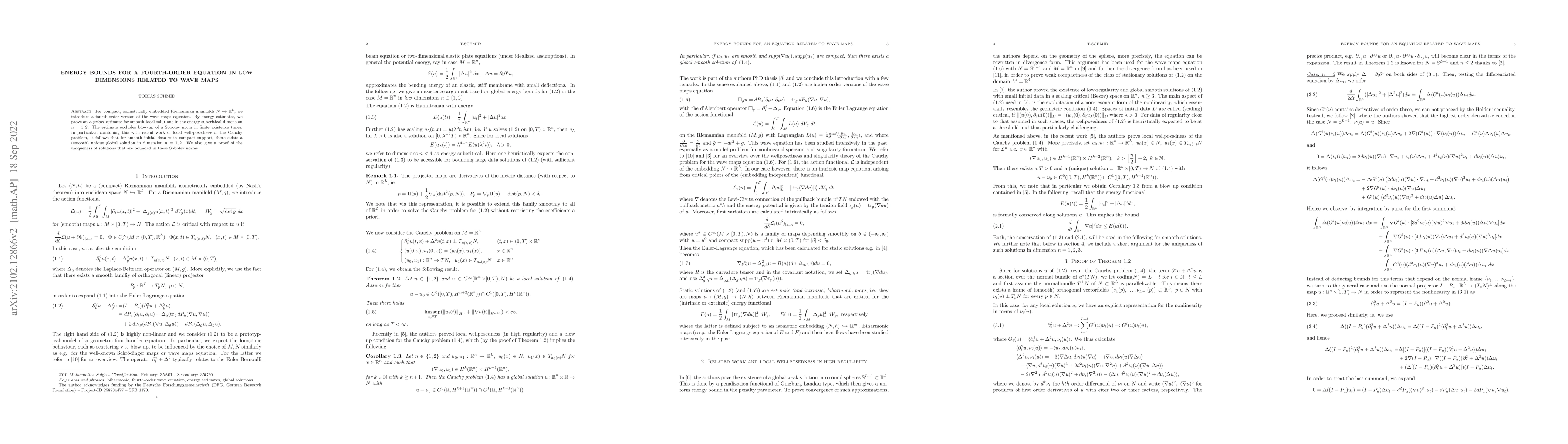For compact, isometrically embedded Riemannian manifolds $ N \hookrightarrow \mathbb{R}^L$, we introduce a fourth-order version of the wave map equation. By energy estimates, we prove an $\textit{a priori}$ estimate for smooth local solutions in the energy subcritical dimension $ n = 1,2$. The estimate excludes blow-up of a Sobolev norm in finite existence times. In particular, combining this with recent work of local well-posedness of the Cauchy problem, it follows that for smooth initial data with compact support, there exists a (smooth) unique global solution in dimension $n = 1,2$. We also give a proof of the uniqueness of solutions that are bounded in these Sobolev norms.
