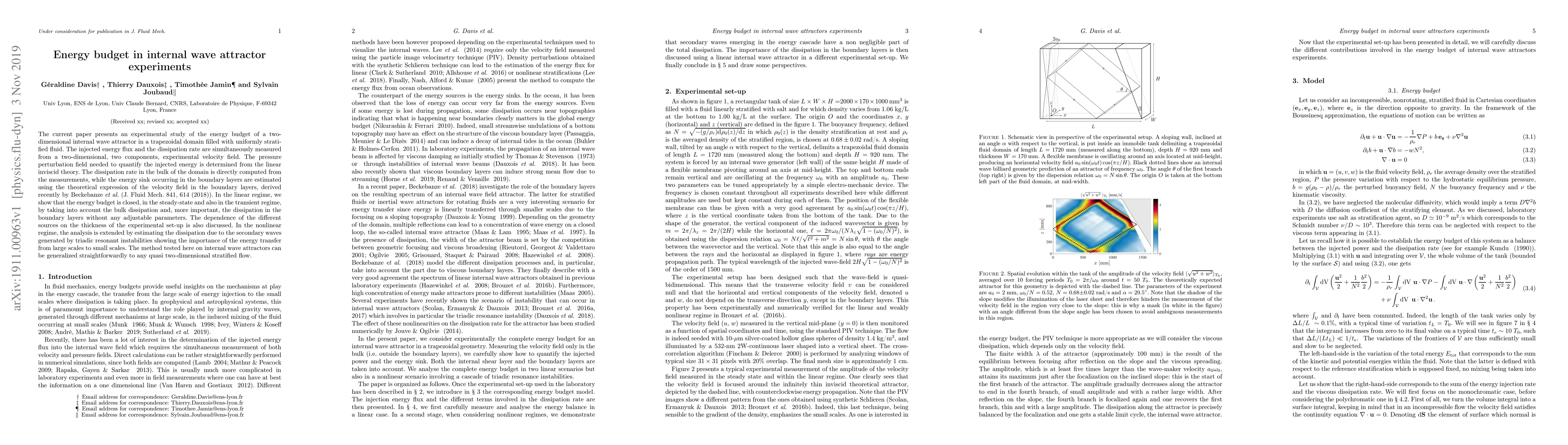 This study measures the energy budget of a two-dimensional internal wave attractor, finding that it is closed in both steady-state and transient regimes without adjustable parameters, with implications for understanding quasi-two-dimensional stratified flows.
