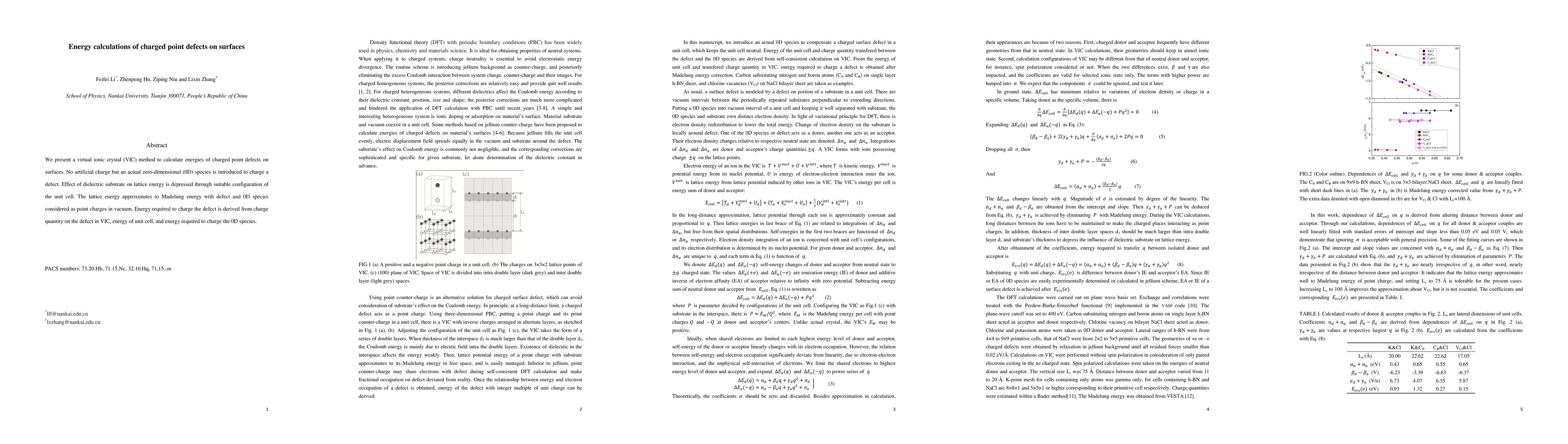 This paper introduces a Virtual Ionic Crystal (VIC) method to calculate the energies of charged point defects on surfaces, using a zero-dimensional species to introduce the charge without artificial means. The method accounts for the dielectric substrate's effect and derives the energy required to charge the defect from the defect's charge, unit cell energy, and the energy of the 0D species.
