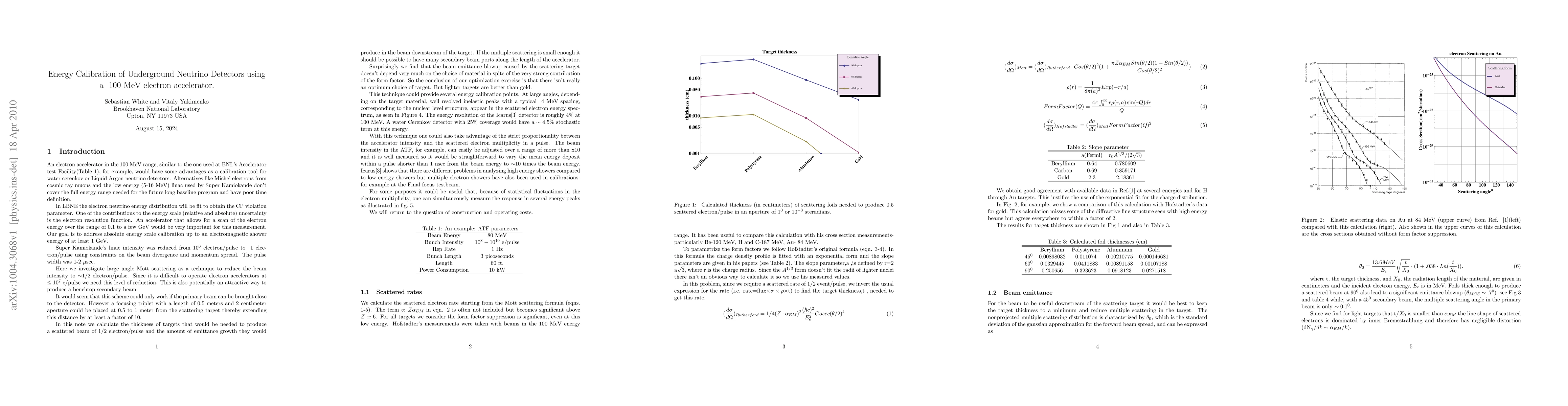The design uses a 100 MeV range electron accelerator as a calibration tool, improving detection efficiency and accuracy for water Cherenkov and Liquid Argon detectors.