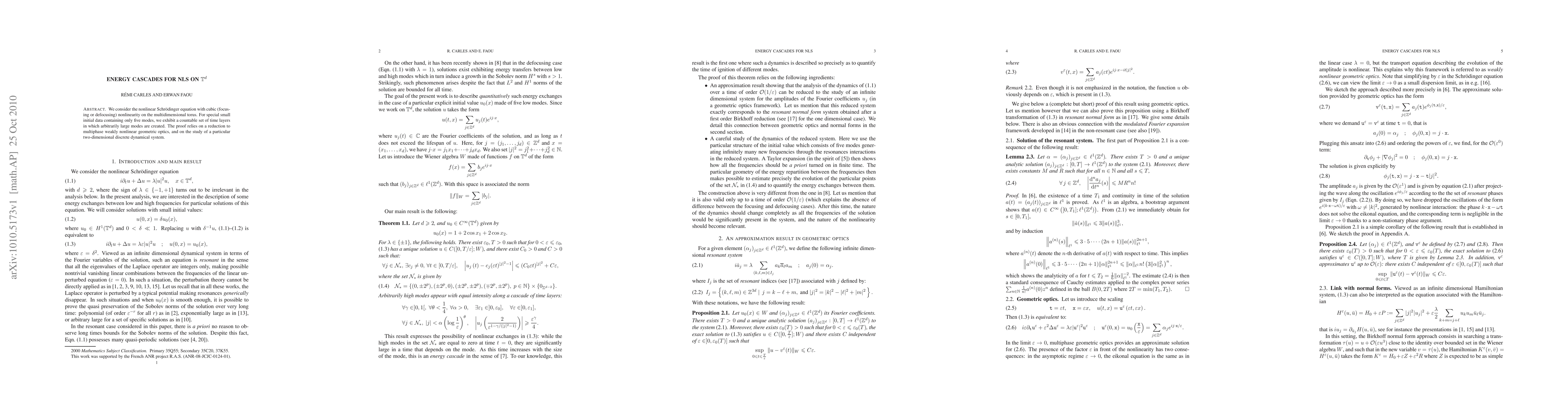 We consider the nonlinear Schrodinger equation with cubic (focusing or defocusing) nonlinearity on the multidimensional torus. For special small initial data containing only five modes, we exhibit a countable set of time layers in which arbitrarily large modes are created. The proof relies on a reduction to multiphase weakly nonlinear geometric optics, and on the study of a particular two-dimensional discrete dynamical system.
