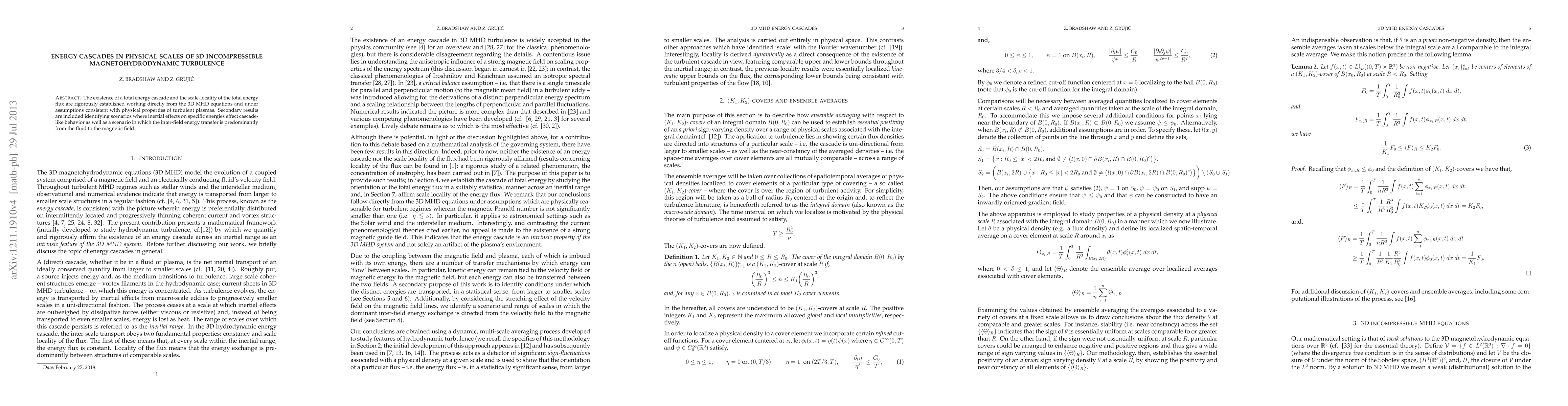 The existence of a total energy cascade and the scale-locality of the total energy flux are rigorously established working directly from the 3D MHD equations and under assumptions consistent with physical properties of turbulent plasmas. Secondary results are included identifying scenarios where inertial effects on specific energies effect cascade-like behavior as well as a scenario in which the inter-field energy transfer is predominantly from the fluid to the magnetic field.