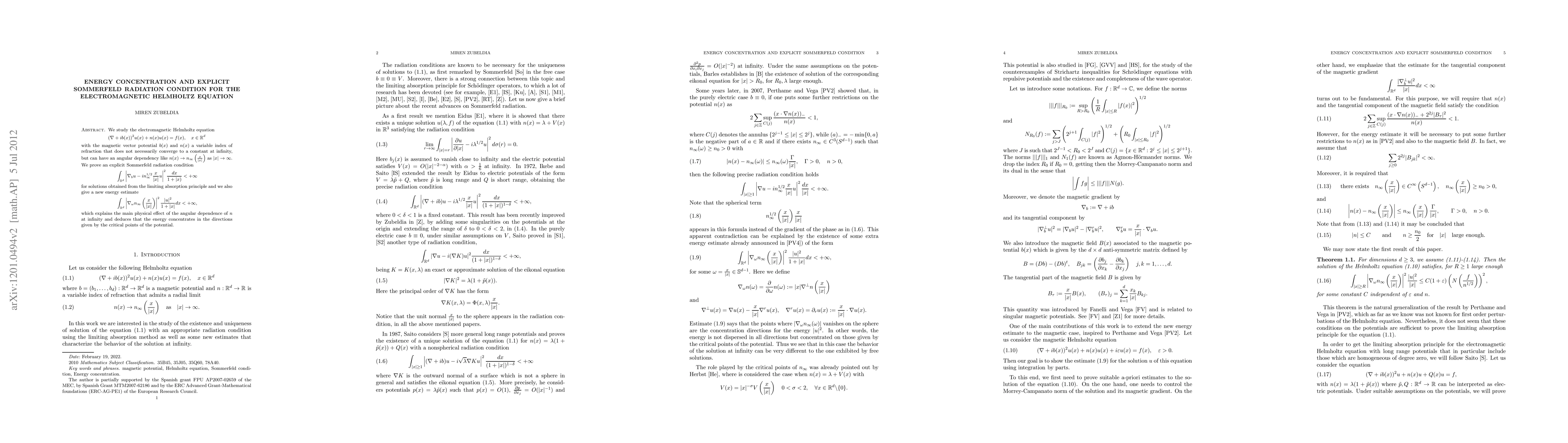 This paper investigates the electromagnetic Helmholtz equation with a variable index of refraction that exhibits angular dependency. It proves an explicit Sommerfeld radiation condition and provides a new energy estimate, demonstrating that the energy concentration occurs at the critical points of the potential.