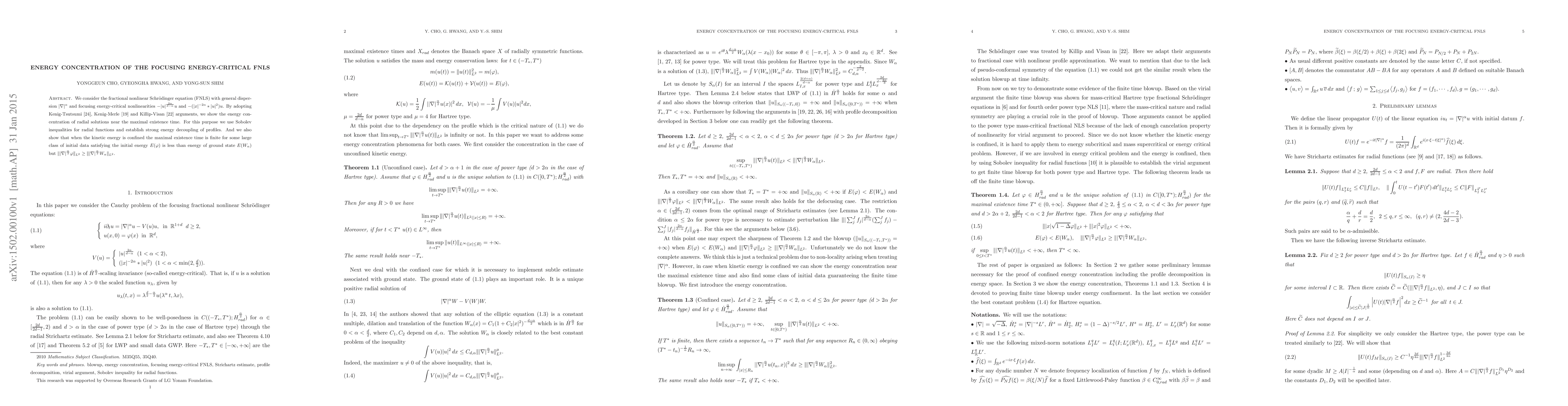 We consider the fractional nonlinear Schr\"odinger equation (FNLS) with general dispersion $|\nabla|^\alpha$ and focusing energy-critical nonlinearities $-|u|^\frac{2\alpha}{d-\alpha}u$ and $-(|x|^{-2\alpha} * |u|^2) u$. By adopting Kenig-Tsutsumi \cite{mets}, Kenig-Merle \cite{keme} and Killip-Visan \cite{kv} arguments, we show the energy concentration of radial solutions near the maximal existence time. For this purpose we use Sobolev inequalities for radial functions and establish strong energy decoupling of profiles. And we also show that when the kinetic energy is confined the maximal existence time is finite for some large class of initial data satisfying the initial energy $E(\varphi)$ is less than energy of ground state $E(W_\alpha)$ but $\||\nabla|^\frac\alpha2 \varphi\|_{L^2} \ge \||\nabla|^\frac\alpha2 W_\alpha\|_{L^2}$.
