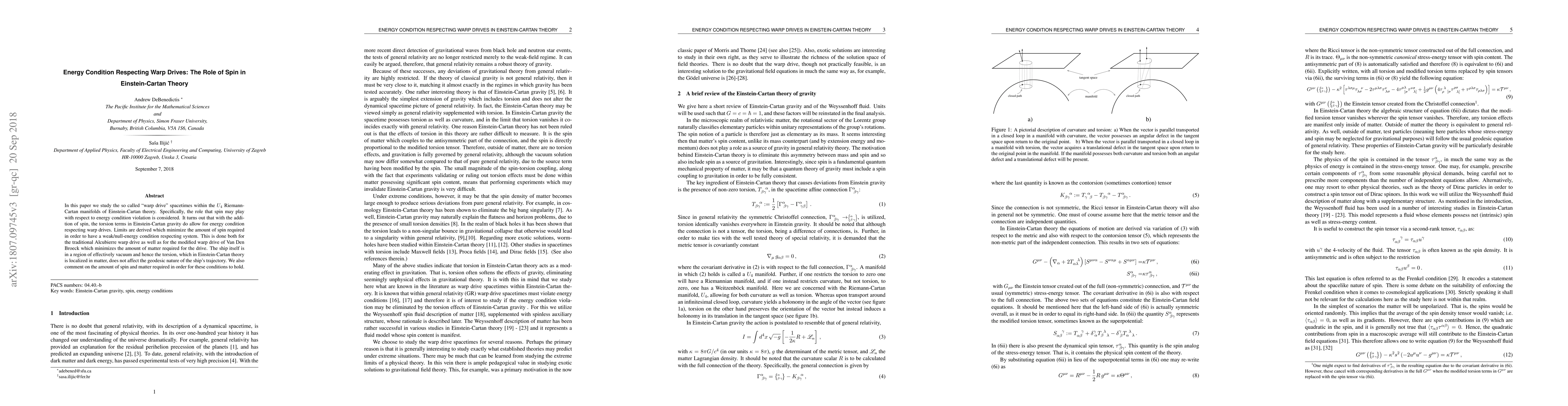 In this paper we study the so called "warp drive" spacetimes within the $U_{4}$ Riemann-Cartan manifolds of Einstein-Cartan theory. Specifically, the role that spin may play with respect to energy condition violation is considered. It turns out that with the addition of spin, the torsion terms in Einstein-Cartan gravity do allow for energy condition respecting warp drives. Limits are derived which minimize the amount of spin required in order to have a weak/null-energy condition respecting system. This is done both for the traditional Alcubierre warp drive as well as for the modified warp drive of Van Den Broeck which minimizes the amount of matter required for the drive. The ship itself is in a region of effectively vacuum and hence the torsion, which in Einstein-Cartan theory is localized in matter, does not affect the geodesic nature of the ship's trajectory. We also comment on the amount of spin and matter required in order for these conditions to hold.