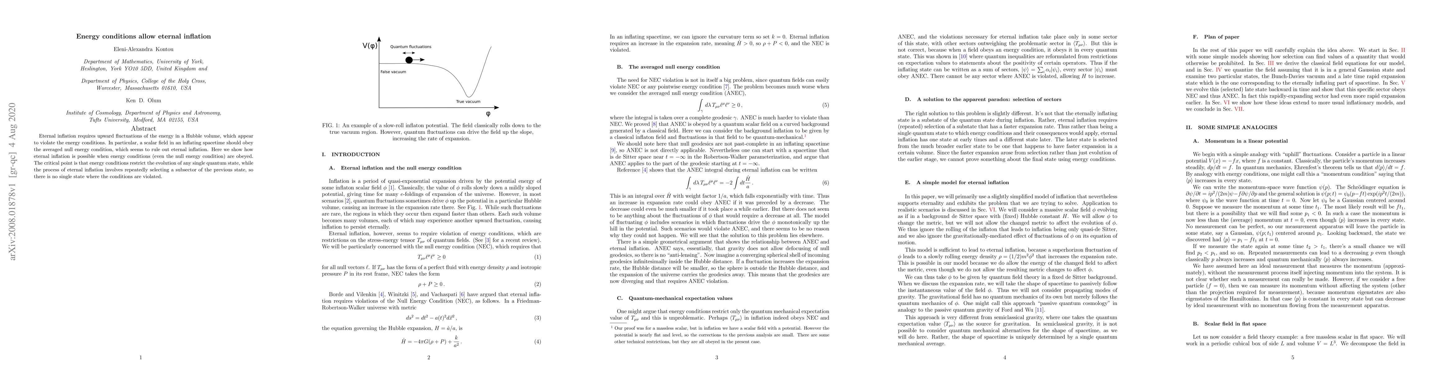 Eternal inflation requires upward fluctuations of the energy in a Hubble volume, which appear to violate the energy conditions. In particular, a scalar field in an inflating spacetime should obey the averaged null energy condition, which seems to rule out eternal inflation. Here we show how eternal inflation is possible when energy conditions (even the null energy condition) are obeyed. The critical point is that energy conditions restrict the evolution of any single quantum state, while the process of eternal inflation involves repeatedly selecting a subsector of the previous state, so there is no single state where the conditions are violated.