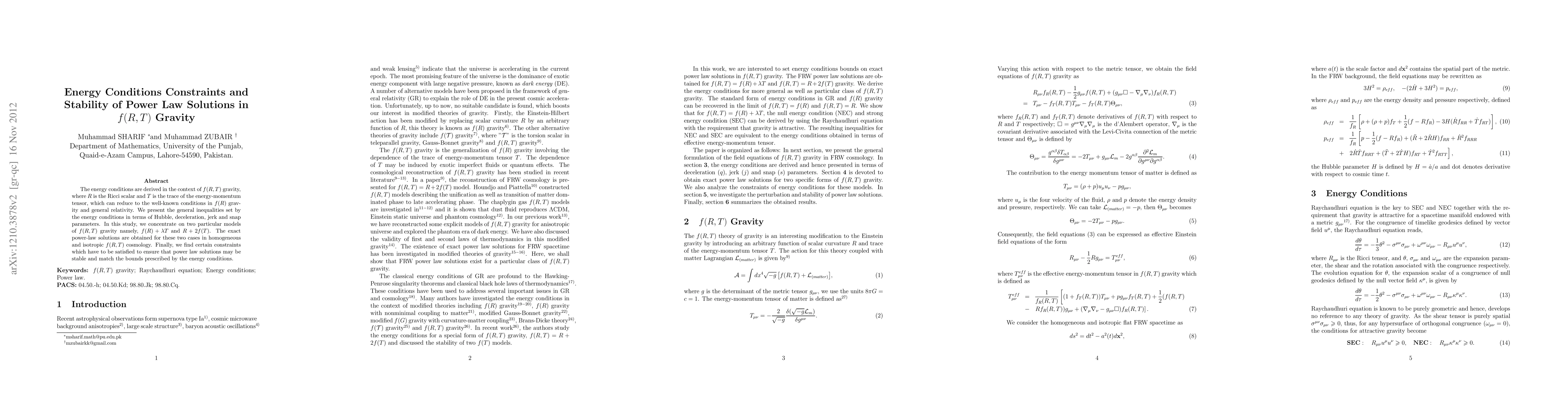 This paper derives energy conditions in $f(R,T)$ gravity and examines the stability of power-law solutions for two specific models: $f(R)+\lambda{T}$ and $R+2f(T)$. It finds constraints that ensure the stability of these solutions while adhering to the energy conditions.
