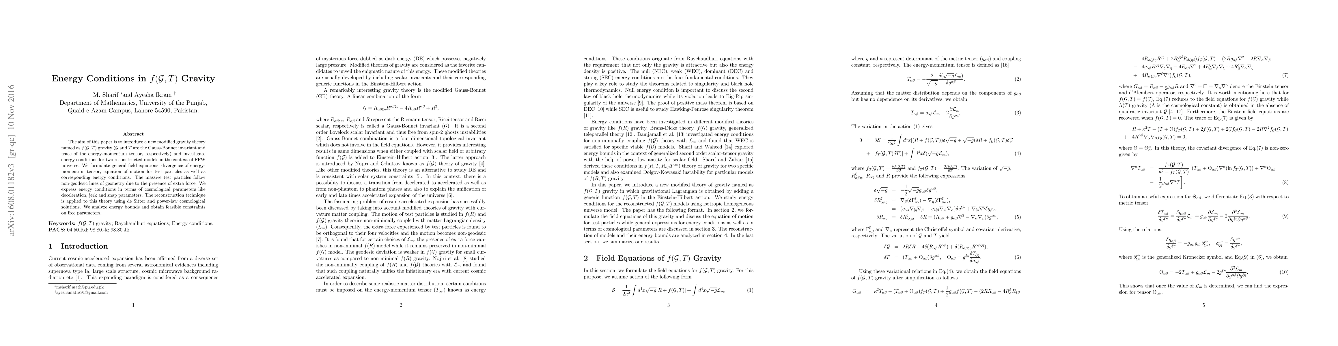 This paper introduces $f(\mathcal{G},T)$ gravity, a new modified gravity theory based on the Gauss-Bonnet invariant and energy-momentum tensor trace, and investigates energy conditions in a FRW universe. It formulates field equations and analyzes cosmological parameters to derive constraints on free parameters.