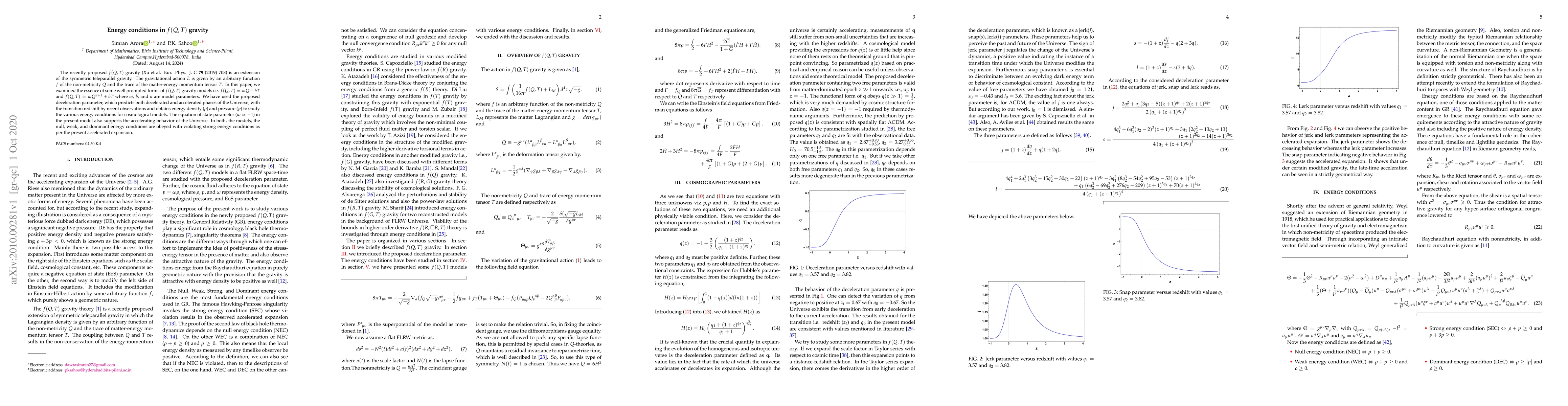 This paper explores the $f(Q, T)$ gravity models, examining $f(Q,T)= mQ+bT$ and $f(Q,T)= m Q^{n+1}+b T$ to study energy conditions in cosmology. The models support accelerated expansion, obeying null, weak, and dominant energy conditions while violating strong energy conditions.