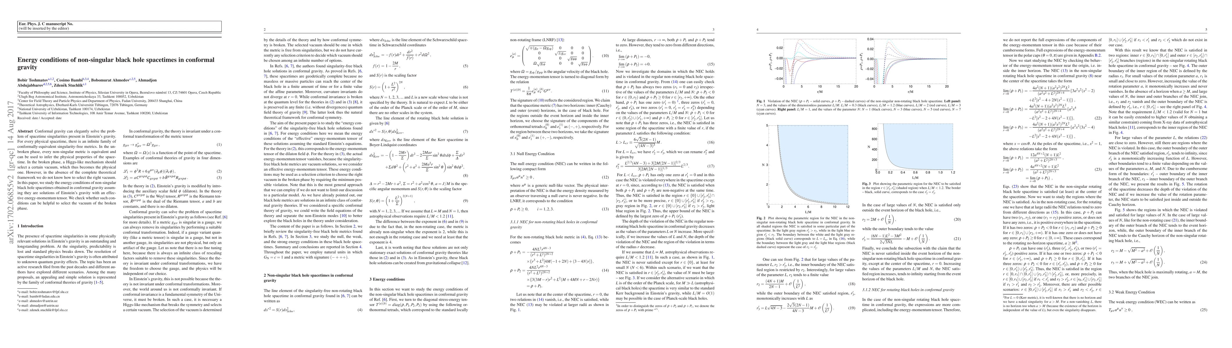 This paper explores the energy conditions of non-singular black hole spacetimes in conformal gravity, aiming to determine if these conditions can aid in selecting the appropriate vacuum state in the broken phase. It examines the equivalence of non-singular metrics in the unbroken phase and the implications for physical properties.