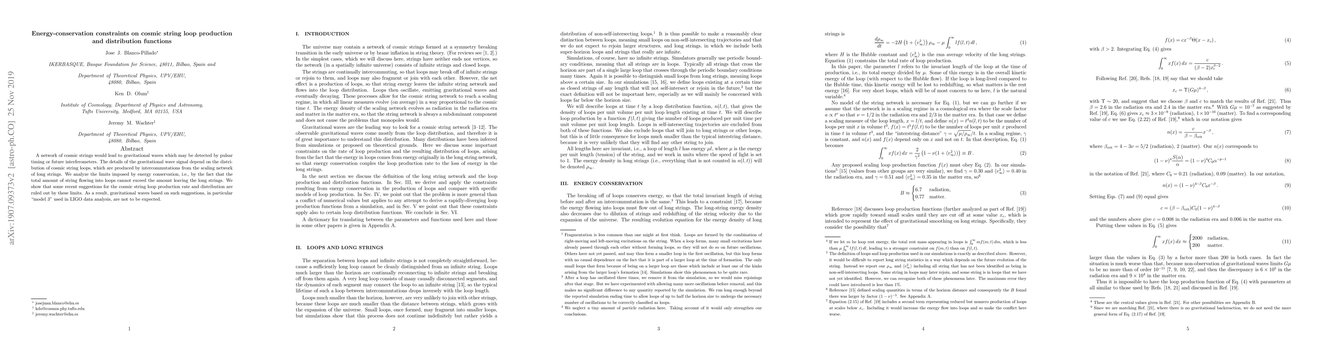 A network of cosmic strings would lead to gravitational waves which may be detected by pulsar timing or future interferometers. The details of the gravitational wave signal depend on the distribution of cosmic string loops, which are produced by intercommutations from the scaling network of long strings. We analyze the limits imposed by energy conservation, i.e., by the fact that the total amount of string flowing into loops cannot exceed the amount leaving the long strings. We show that some recent suggestions for the cosmic string loop production rate and distribution are ruled out by these limits. As a result, gravitational waves based on such suggestions, in particular "model 3" used in LIGO data analysis, are not to be expected.