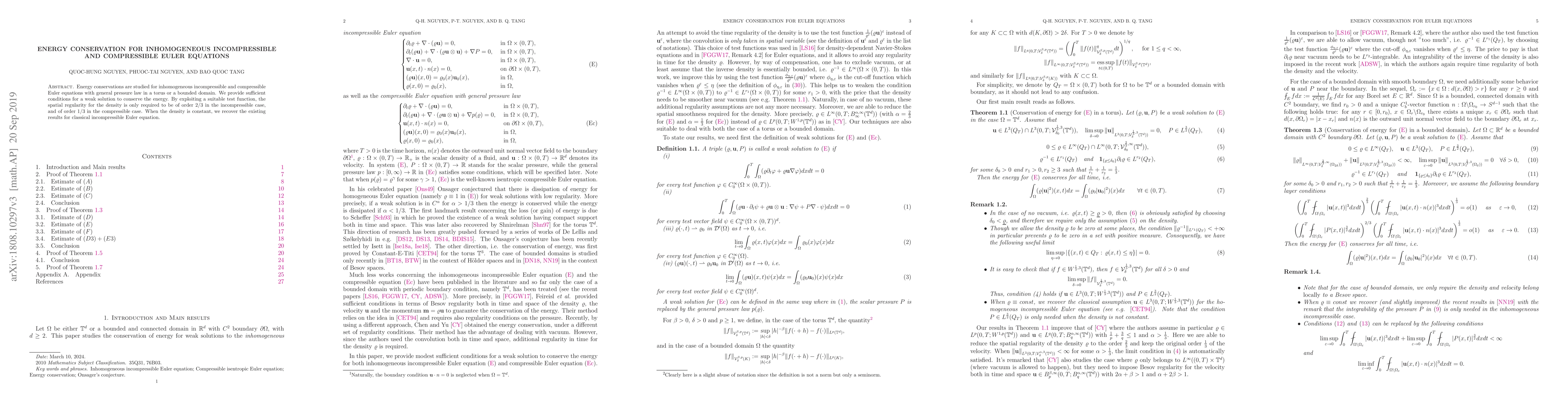 This paper investigates energy conservation for inhomogeneous incompressible and compressible Euler equations with a general pressure law, providing conditions under which weak solutions conserve energy. It achieves spatial regularity requirements for density as low as $2/3$ for incompressible and $1/3$ for compressible cases.