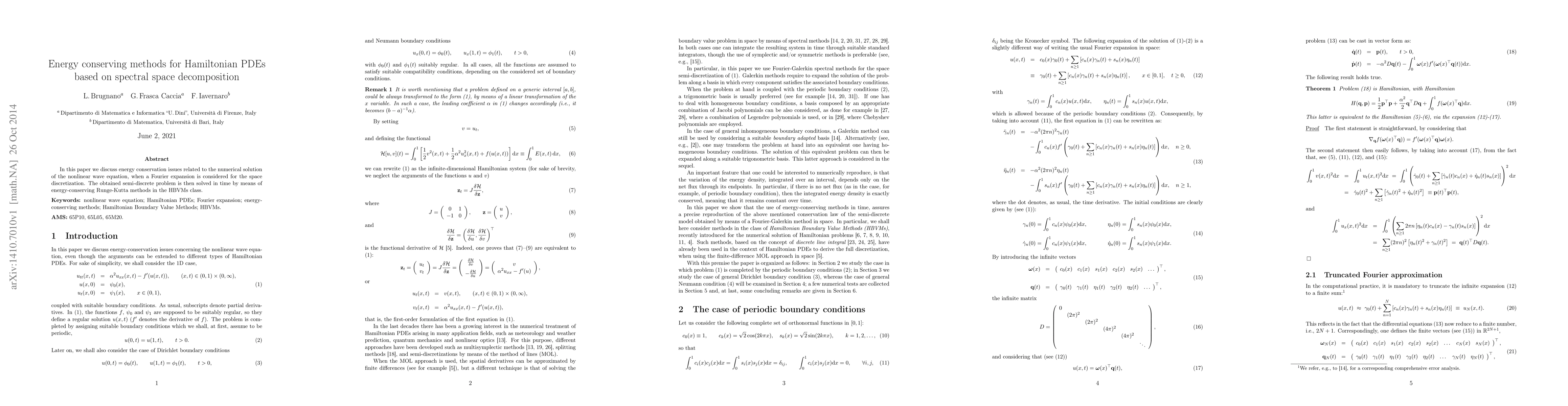 In this paper we discuss energy conservation issues related to the numerical solution of the nonlinear wave equation, when a Fourier expansion is considered for the space discretization. The obtained semi-discrete problem is then solved in time by means of energy-conserving Runge-Kutta methods in the HBVMs class.