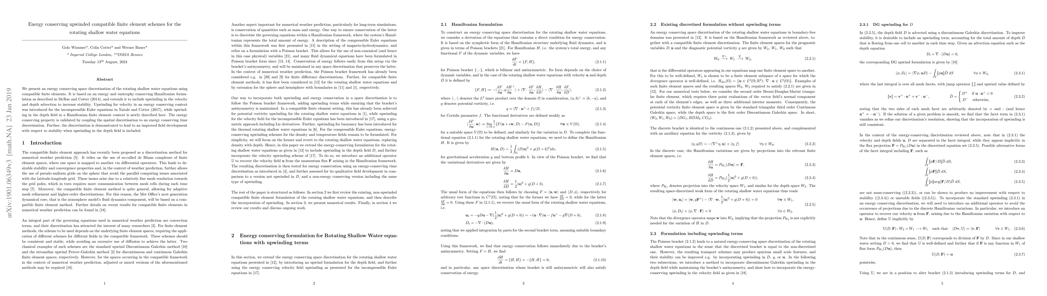 This paper introduces an energy conserving finite element method for the rotating shallow water equations, combining compatible elements with Hamiltonian formulations for stability via upwinding in velocity and depth advection. The method's energy conservation is validated by coupling with an energy conserving time discretisation, showing improved stability through depth upwinding.